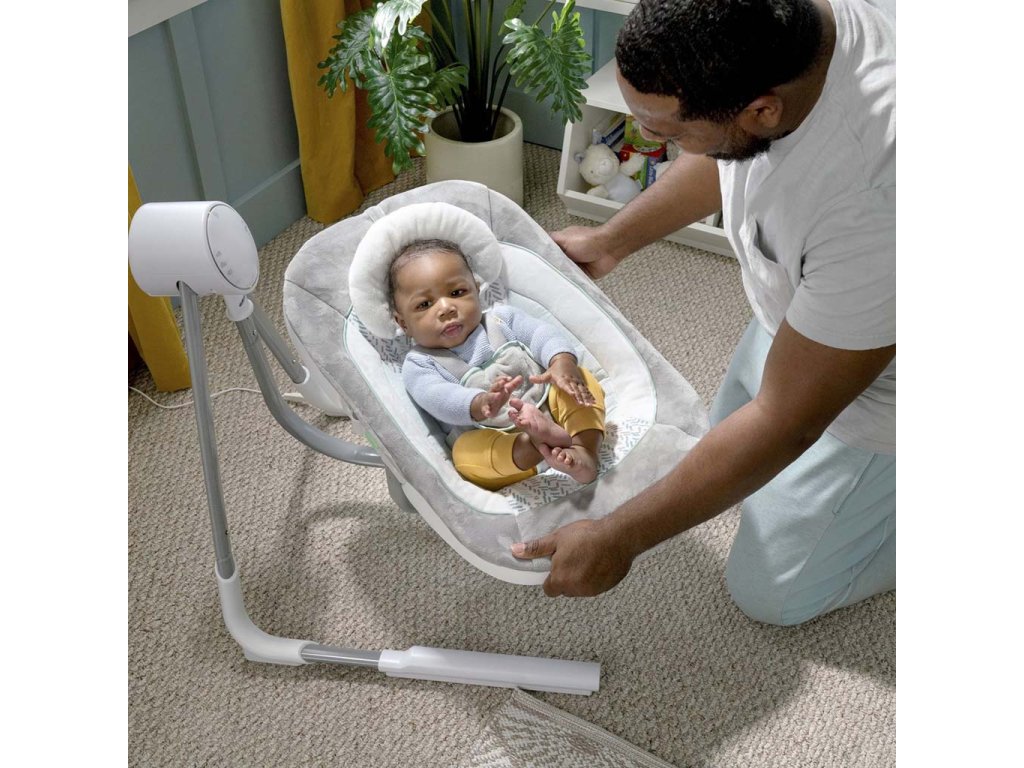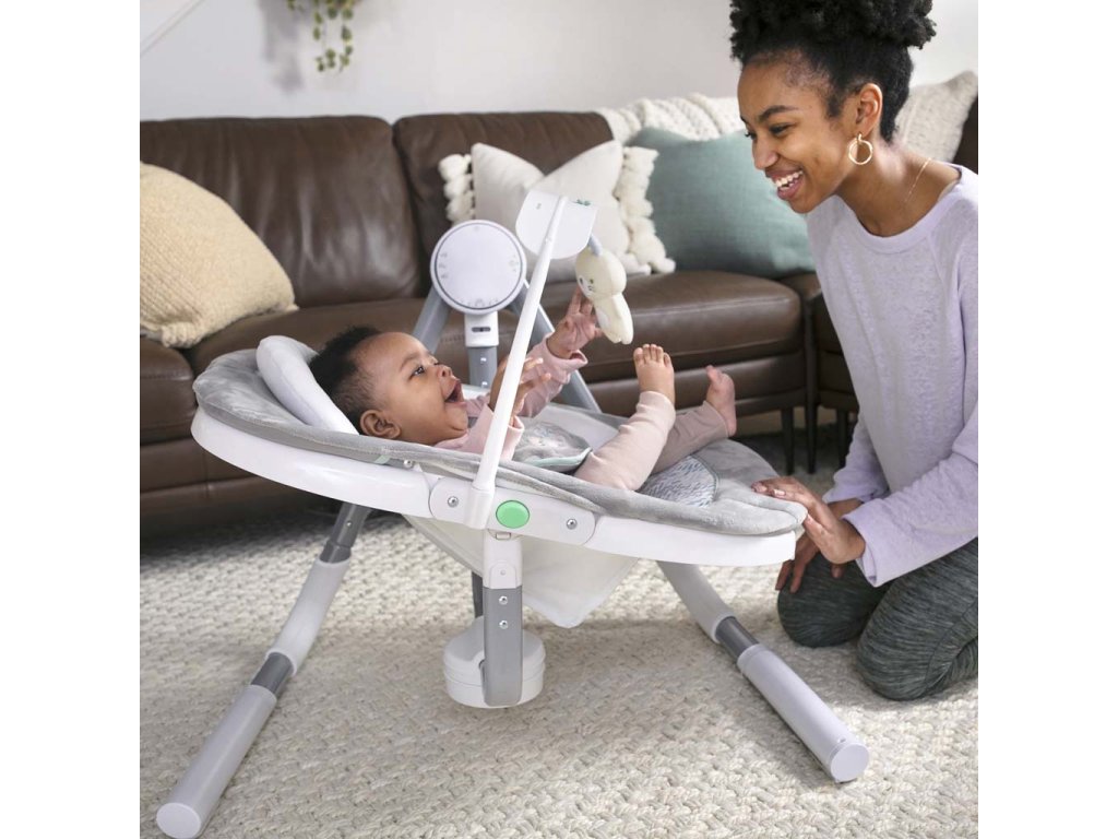 Az Ingenuity™ AnyWay Sway™ legmodernebb hintája kényelmes helyet biztosít a babának a pihenéshez és a ringatózáshoz – és a kezeidnek a megérdemelt pihenést! Ez a teljesen felszerelt hordozható babahinta 180°-ban elforgatható, így akár 3 irányban is ringathatja, aminek köszönhetően a baba nyugodt, és Ön szemmel tarthatja.