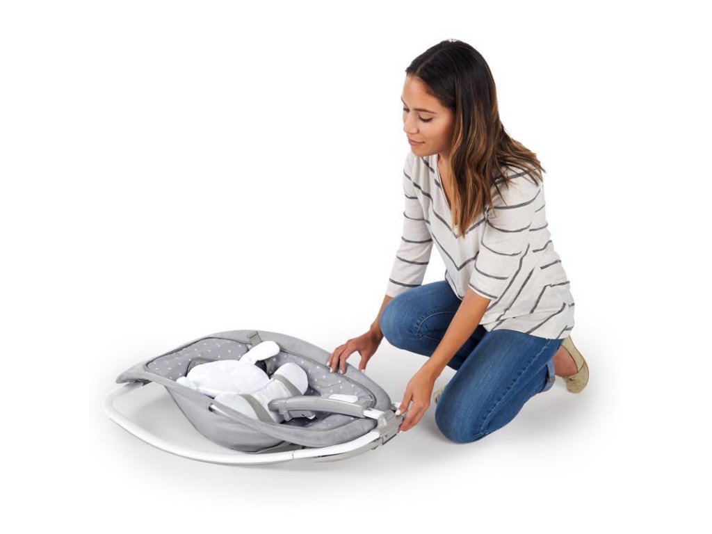 A legelegánsabb és legmodernebb babahinta, ami csak létezhet! Ez a modern Ingenuity hinta egyedülálló módon három különböző pozícióba dönthető, hogy biztosítsa a baba maximális kényelmét. Talán a legjobb része ennek a csodálatos hintának a nagyszerű megjelenés, valamint a prémium, nemes szövetek és textilek. Ez a hinta nagyon egyszerűen rögzíthető, és nyugtató vibrációkkal, természeti hangokkal és zenével ellátott, helyhez kötött székré alakítható. A játékokkal ellátott körforgó eltávolítása után ügyes hintaszékké válik, amelyet kislányod imádni fog. A figyelemre méltóan puha szövetek luxus puhasággal kényeztetik a babát újszülött betéttel és fejtámlával, amelyek különleges támogatást nyújtanak a kisebb gyermekek számára, és könnyen eltávolíthatók a gyermek növekedésével. Ez a modern platform úgy lett kialakítva, hogy szinte teljesen laposra összehajtható legyen, így a tárolás és a szállítás gyerekjáték lesz. Imádni fogja, hogy milyen csodálatosan kiegészíti otthona megjelenését, és kis kincse imádni fogja az ilyen rendkívüli puhaságba való bújást.