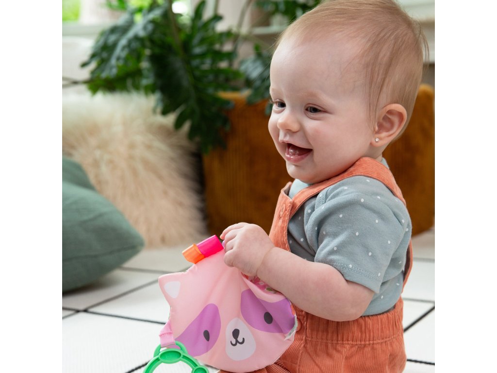 Gondoskodjon a gyermek kíváncsiságáról az Ingenuity Crinklet - Deni érzékszervi játékkal. Ez a plüss, susogó játék Deni mosómedvével megnyugtatja a babát otthon és útközben is.