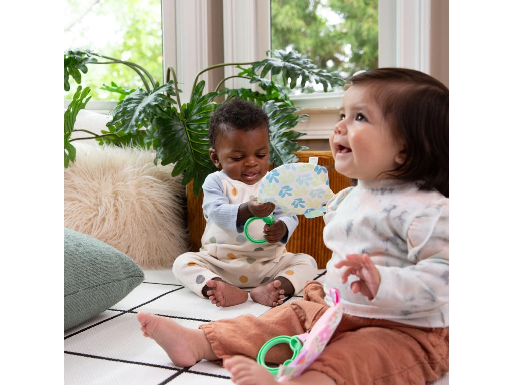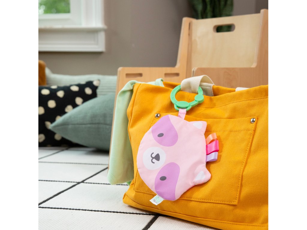 - Útközben? Semmi gond. A játéknak van egy C-gyűrűje, amely nagyszerű a babakocsi fogantyúihoz és a pelenkázótáskához való rögzítéshez.