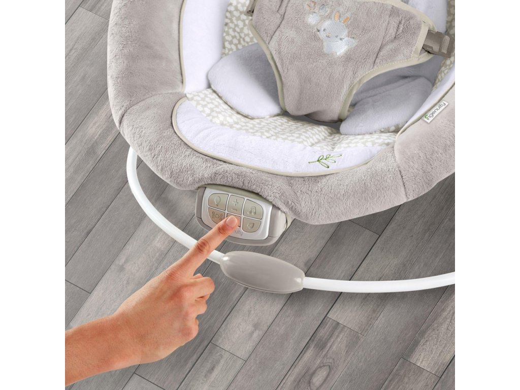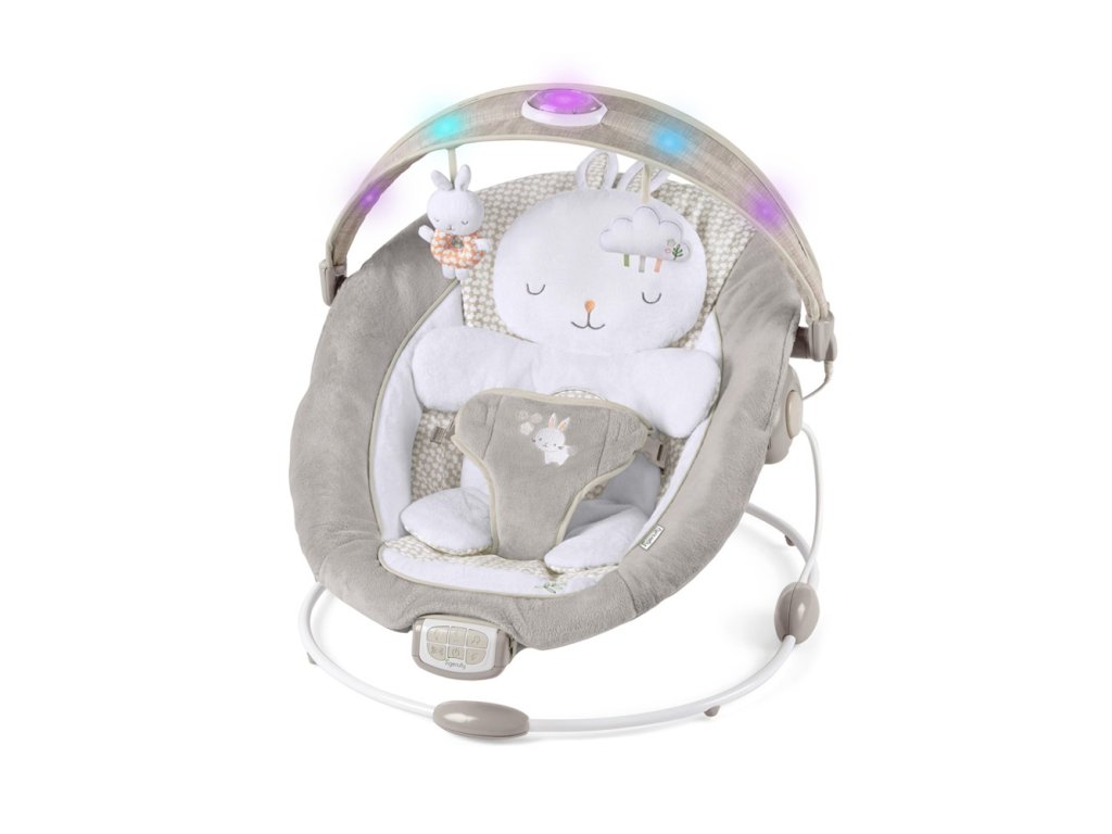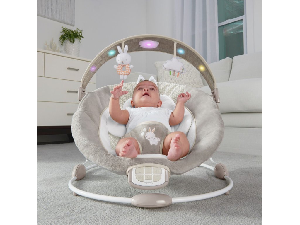 Az Ingenuity Twinkle Tails pihenőszékben a baba úgy fogja érezni, mintha biztonságos karokban lenne, így az anyuka időt nyer a pihenésre. Ez a pihenőszék segít megőrizni a baba nyugalmát és biztonságát, és garantálja a maximális pihenést vagy szórakozást. A kényelmes ülőrész tartalmaz egy kivehető nyúl alakú újszülött betétet, amelyet külön játékszőnyegként vagy pelenkázóként is használhat. A babát elbűvölik a finom fények, amelyek a játékhíddal ellátott baldachinon táncolnak, amely ráadásul 2 aranyos játékot is tartalmaz. A kellemes dallamok, a természet hangjai, a fehér zaj és a finom rezgések megnyugtatnak minden babát.