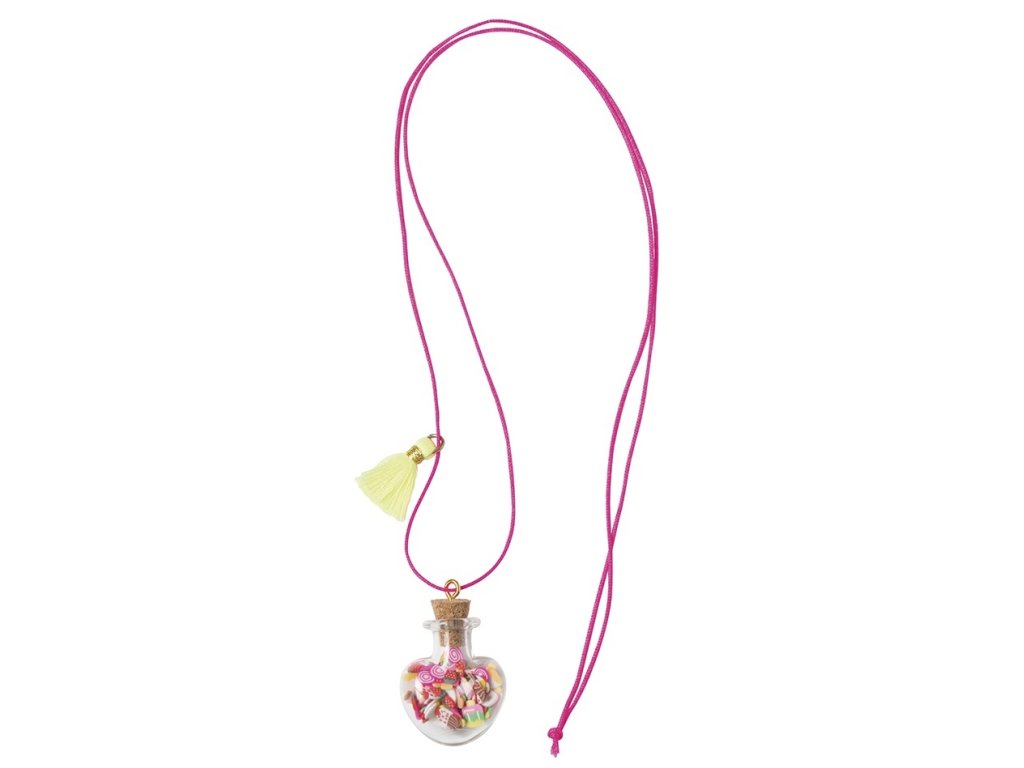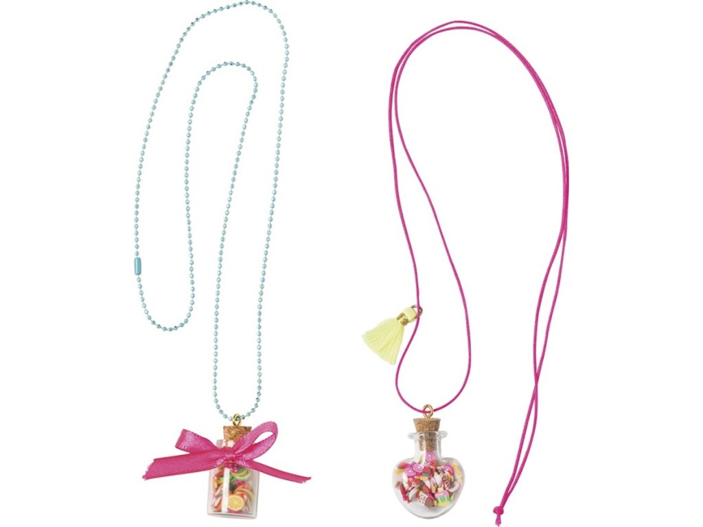 Ez a kreatív készlet lehetővé teszi, hogy 2 szép nyakláncot készítsen egy "finomságokkal" teli üvegcsés medállal. Kövesse a nyakláncok lépésről lépésre történő elkészítésének útmutatóját.