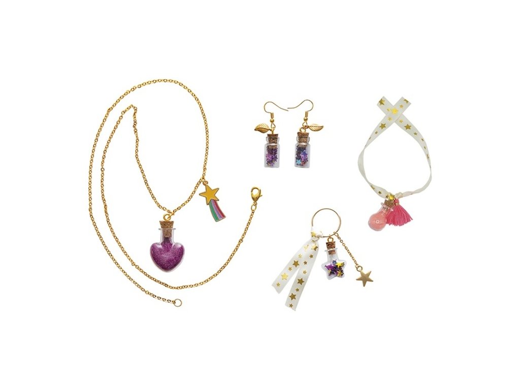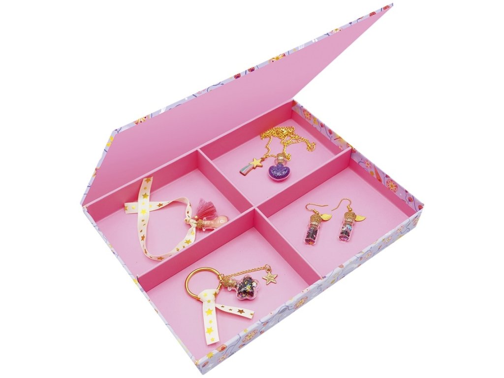 Ez a kreatív készlet lehetővé teszi, hogy 4 csodálatos mesés ékszert készítsen.