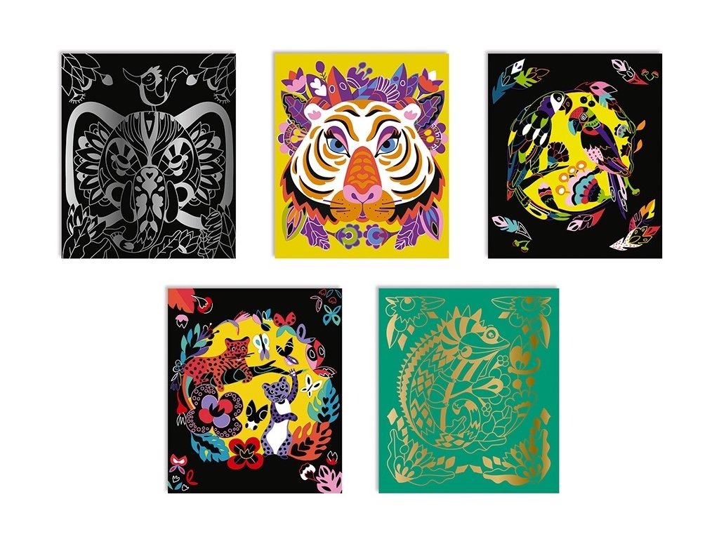 A Kreatív készlet kaparóképekkel az Állatok a világban fejleszti a finommotorikát, a türelmet és a részletekre való odafigyelést.