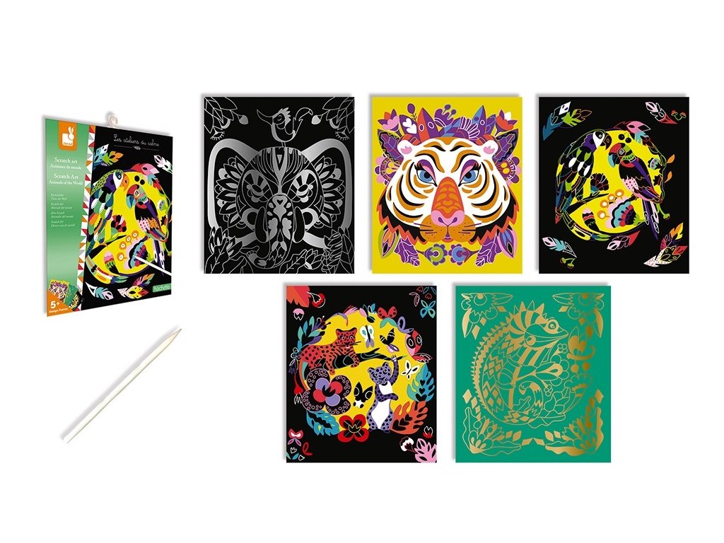 Janod Atelier Mini Kreatív készlet kaparóképek Állatok a világban.