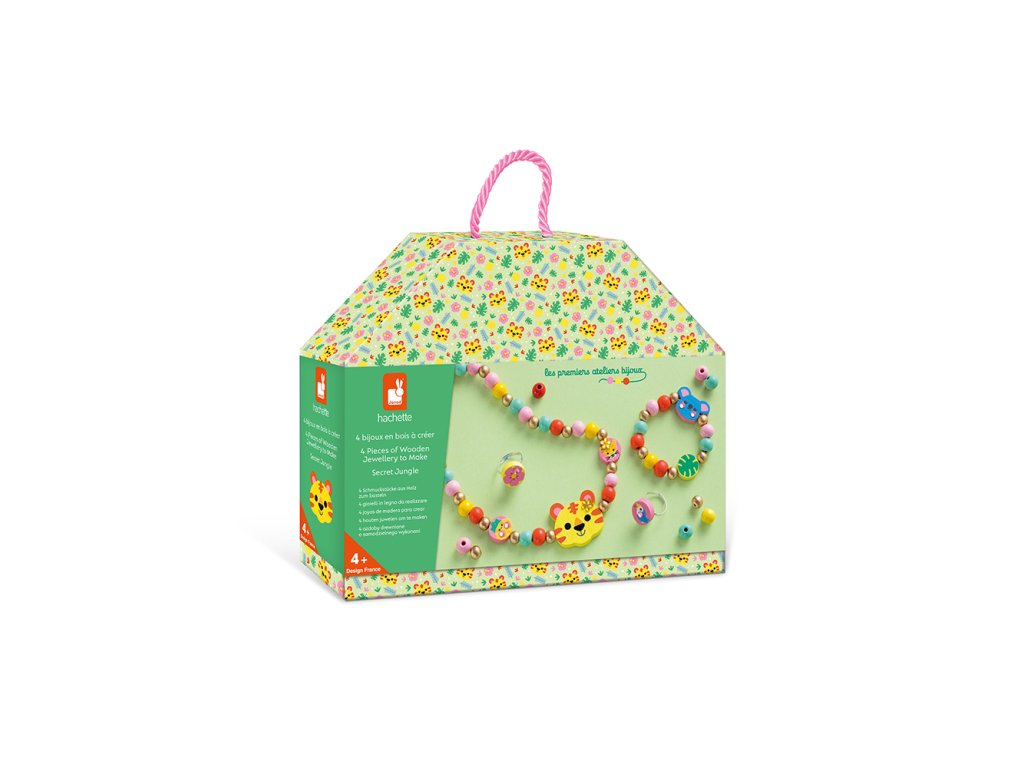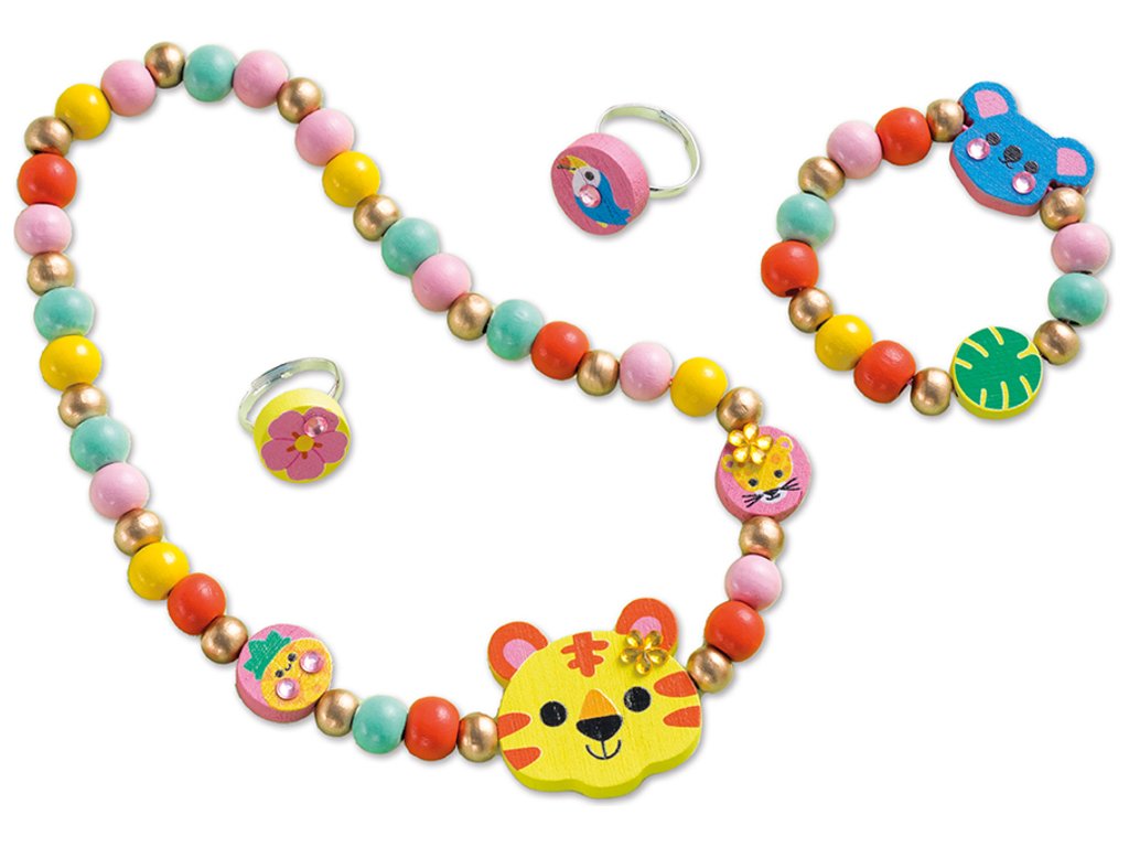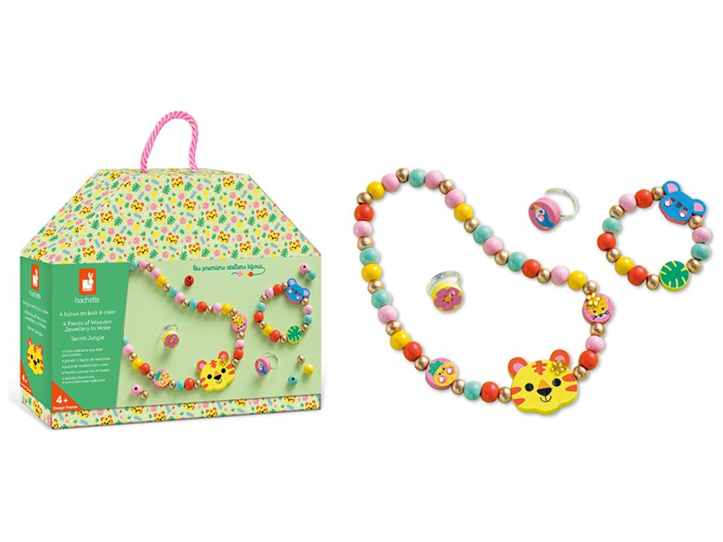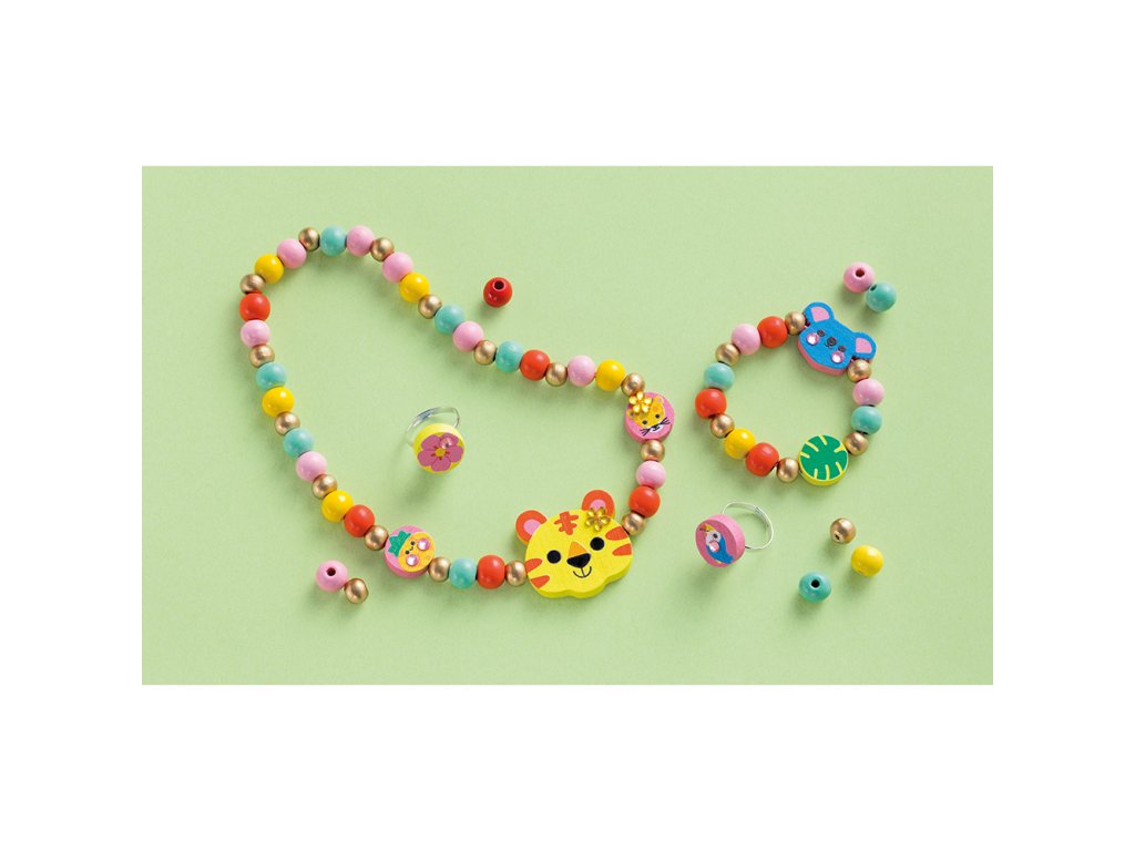 Janod Atelier Kreatív szett Ékszerkészítés Fa gyöngyök Dzsungel 4 db 4 éves kortól