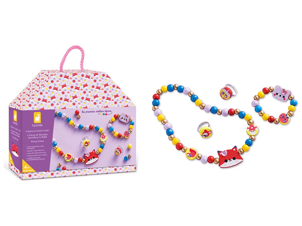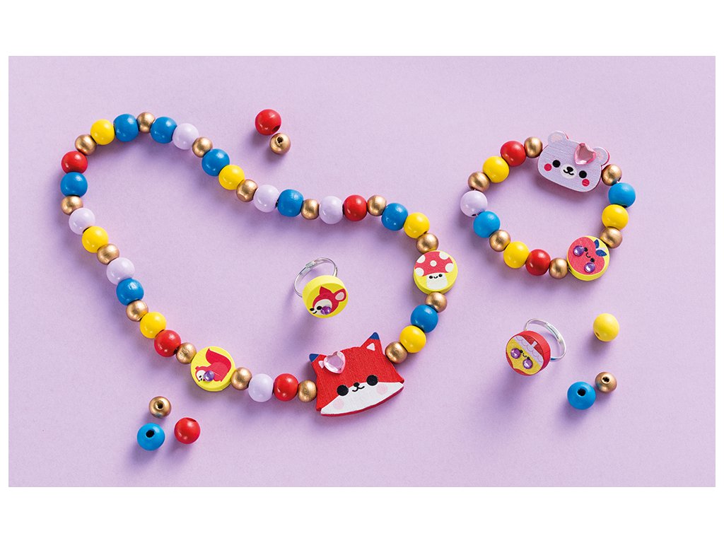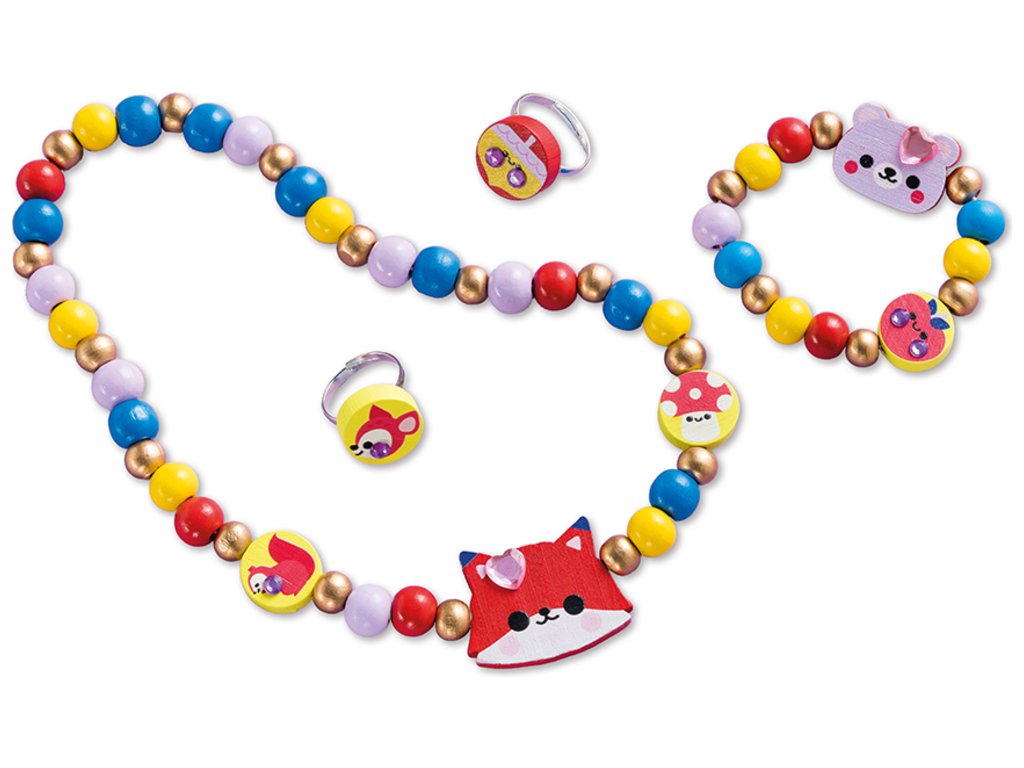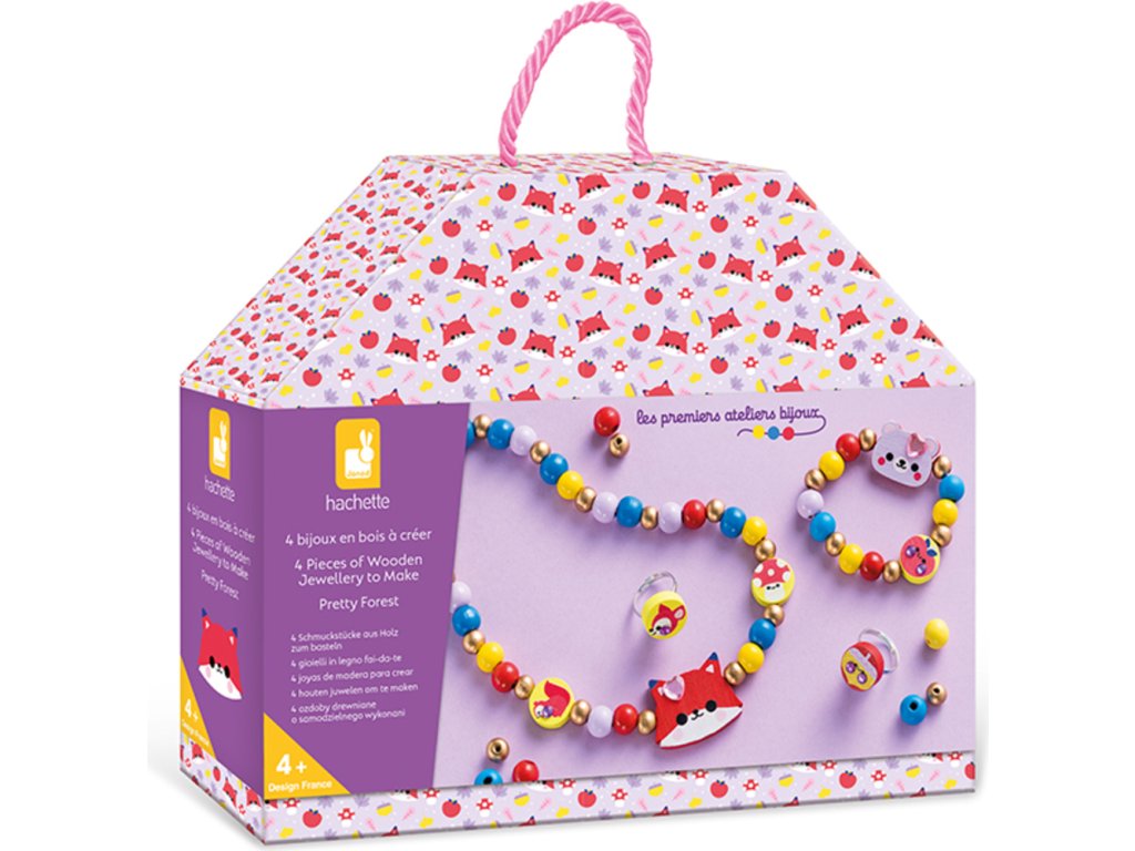 Janod Atelier Kreatív szett Ékszerkészítés Fa gyöngyök Erdei állatok 4 db