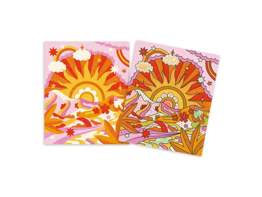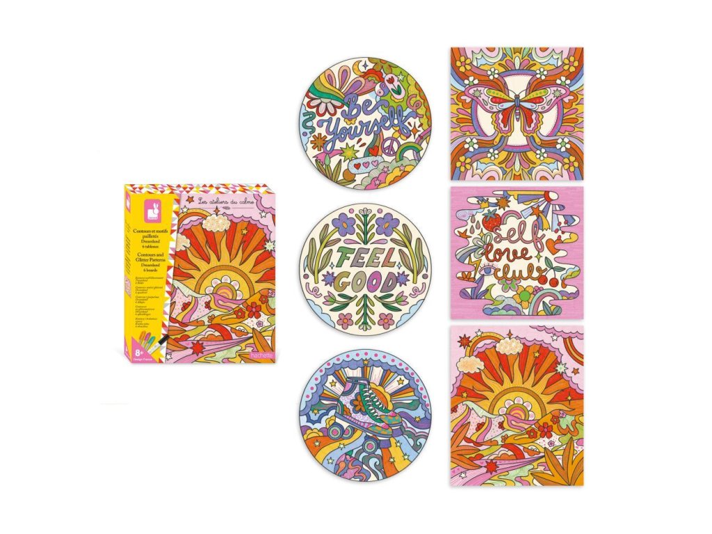 Hagyja, hogy a gyerekek kipróbálják a már kész képek részleteinek kifestését! Ezzel a kreatív készlettel a 8 éves vagy annál idősebb kis művészeknek a 6 képre már nyomtatott illusztrációk körvonalait kell követniük. Fekete vagy csillogó vonalak? A gyerekek döntenek! A képek egyes részei akár a saját választású mintákkal is kiegészíthetők. Ez egy kreatív készlet, amely felhívja a figyelmet a részletekre, és valódi elégedettséget kínál a kezdő tervezők számára is!
