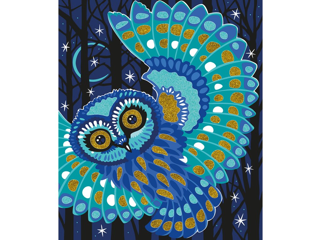 Találkozz egy fenséges tigrissel, egy fantasztikus unikornissal vagy egy hipnotikus bagollyal! Ez a kreatív készlet 5 képet tartalmaz homokkal és csillámokkal való díszítéshez.