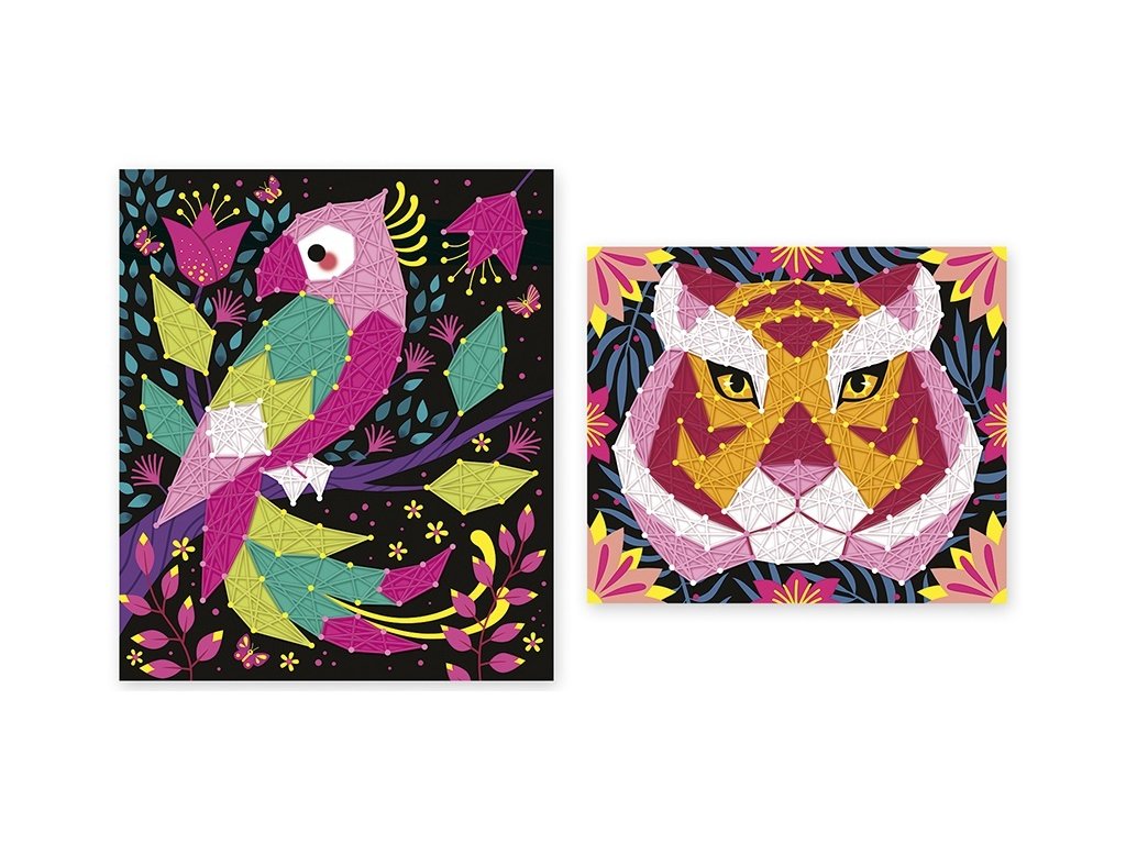 Ez a kreatív készlet lehetővé teszi, hogy 2 csodálatos zsinórképet készíts az állatokról lépésről lépésre.