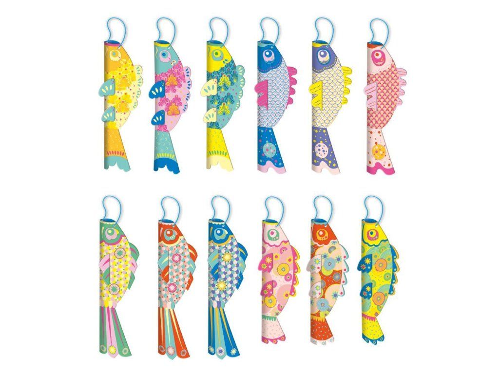 Milyen szép, tarka hal! Ez a kreatív készlet lehetővé teszi a 7 éves vagy annál idősebb gyermekek számára, hogy 12 függő papírhalat készítsenek, ideális tengeri témájú girland készítéséhez vagy apró meglepetésként, például április 1-jén!