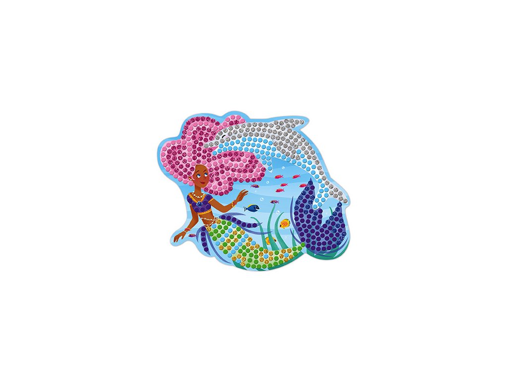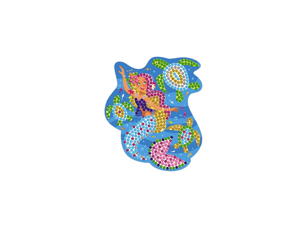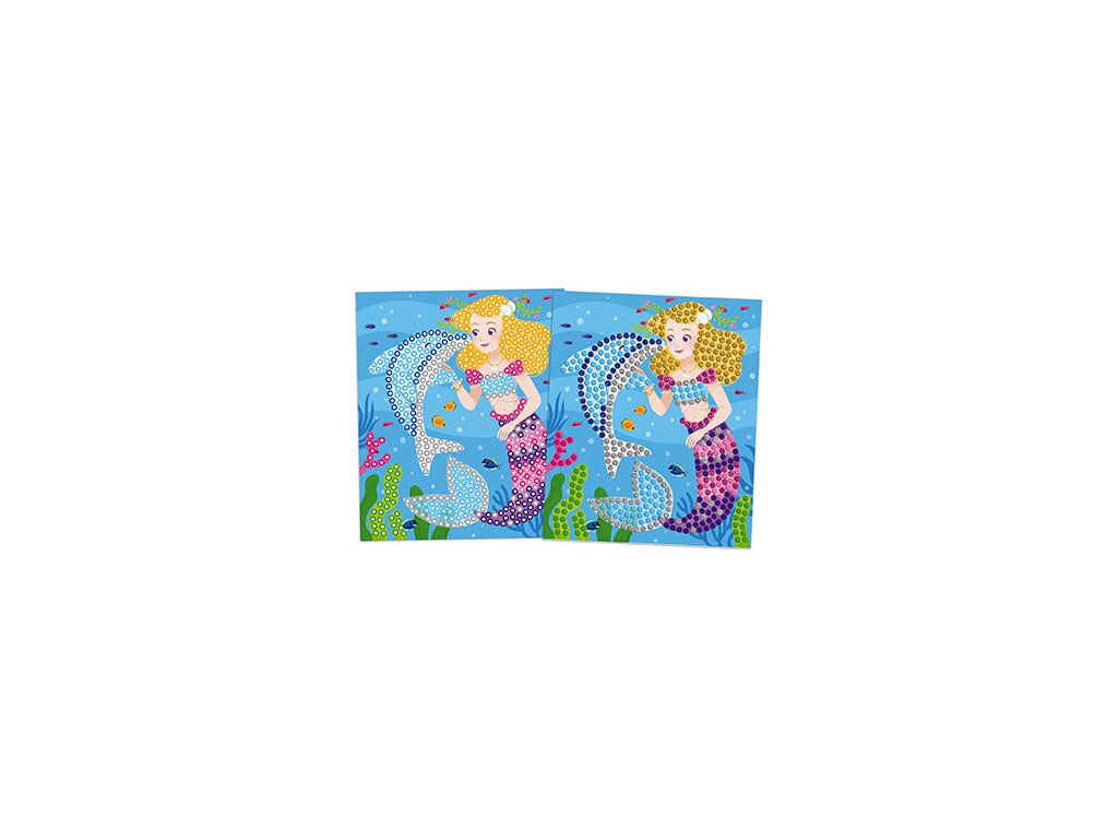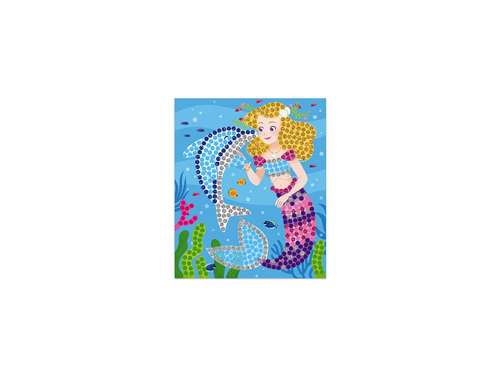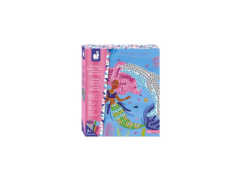 A Janod Atelier Maxi Kreatív készlet Mozaik Delfinek és Sellők 5 gyönyörű motívummal ellátott kártyát és 10 ív színes mozaikpapírt tartalmaz.
