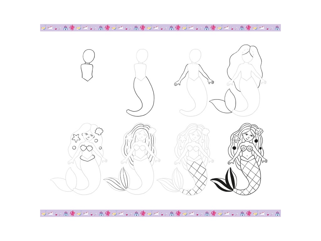 A lépésről lépésre történő rajzolás megtanulása sok órányi lebilincselő, ugyanakkor megnyugtató és pihentető szórakozást jelent, a kész képek pedig remek dekorációi lesznek a gyerekszobának, és büszkeséget jelentenek a kis művészek számára.