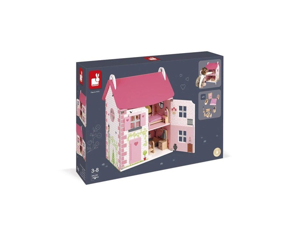 Janod Babaház bútorokkal és nyitható tetővel