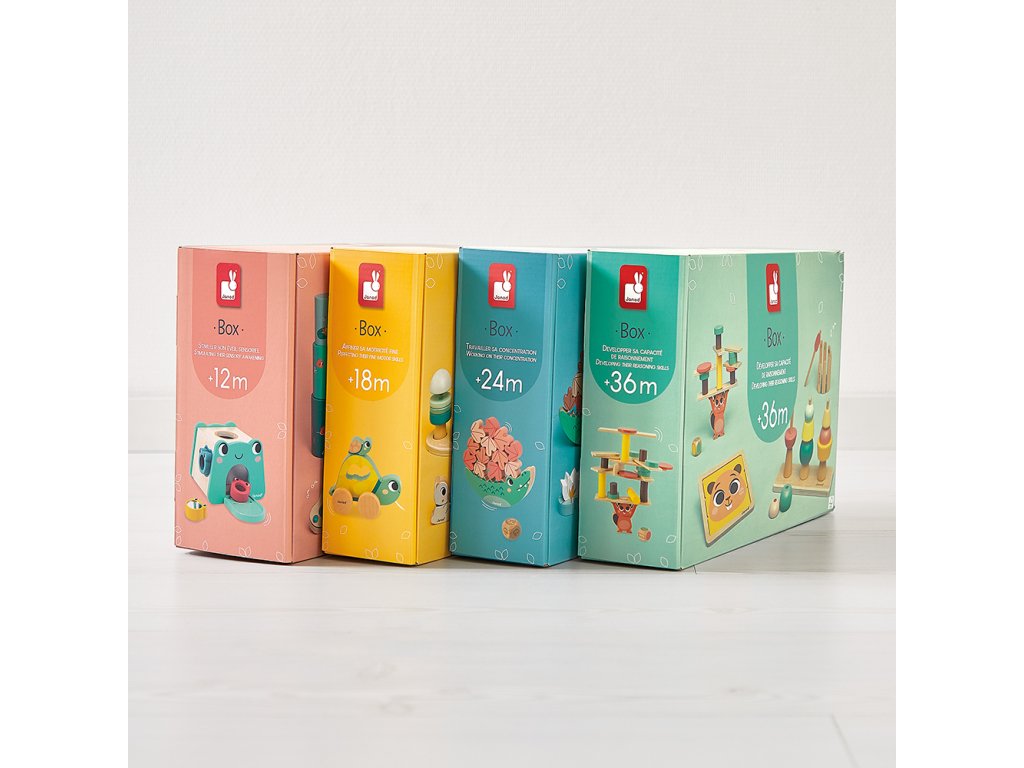 A kalandok minden gyermekre várnak a Janod oktatási dobozzal - a teljes csomag 4 olyan játékot tartalmaz, amelyet a gyermekek korai tanulásának figyelembevételével terveztek. Ezt a dobozt szakértővel együttműködve fejlesztették ki, hogy fokozatosan támogassa gyermeke pszichomotoros fejlődését és a jövőbeli készségek elsajátítását.Tartalmaz: szenzoros kocka a formák válogatásához, 3 részes karton piramis 2 fa kiskacsával, aranyos hangjáték - esőfelhő formájában és 3 részes puzzle fogantyúval.Ezen 4 fa és karton játék mindegyike a gyermek stimulálásának más-más funkciójával büszkélkedhet.A csomag tartalmaz egy részletes útmutatót is, amely segít a dobozból a legtöbbet kihozni. Információkat nyújt a 12 hónapos kortól kezdődő gyermekek fejlődési területeiről, valamint az egyes játékok leírását és azok oktatási értékét.Összesen 4 Janod doboz található a kínálatban (12 hónapos kortól, 18 hónapos kortól, 24 hónapos kortól és 36 hónapos kortól), mindegyiket kifejezetten az adott korcsoportra tervezték.A játék FSCTM fából és kartonból készült a 12 hónapos kortól kezdődő gyermekek első tanulásához.