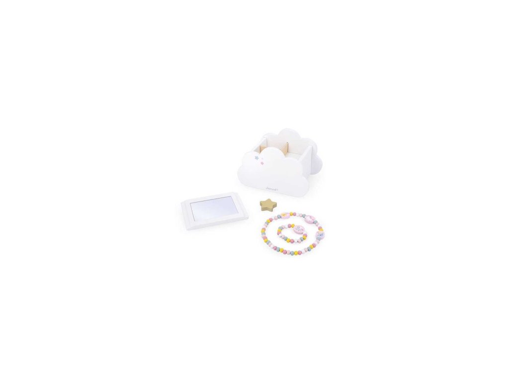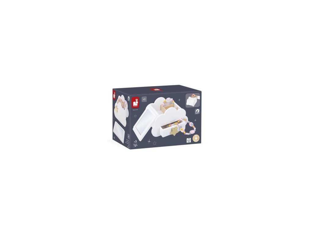 Fedezze fel a Janod Unicorn ékszerdobozt, egy nagyszerű, felhő alakú dobozt, amely 3 éves kortól tartalmaz ékszereket gyermekek számára.