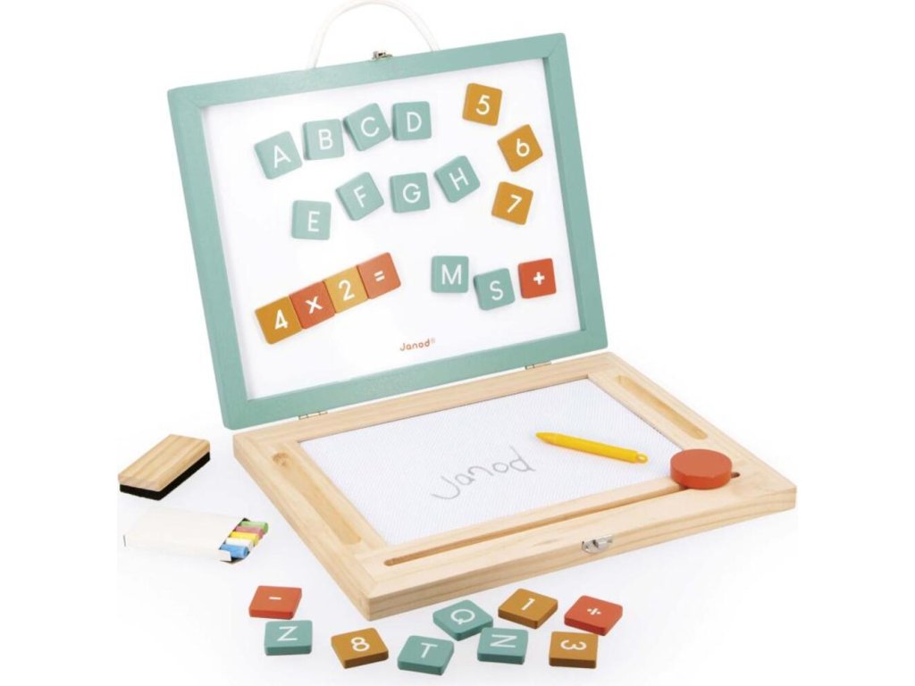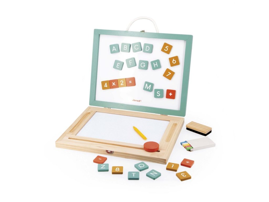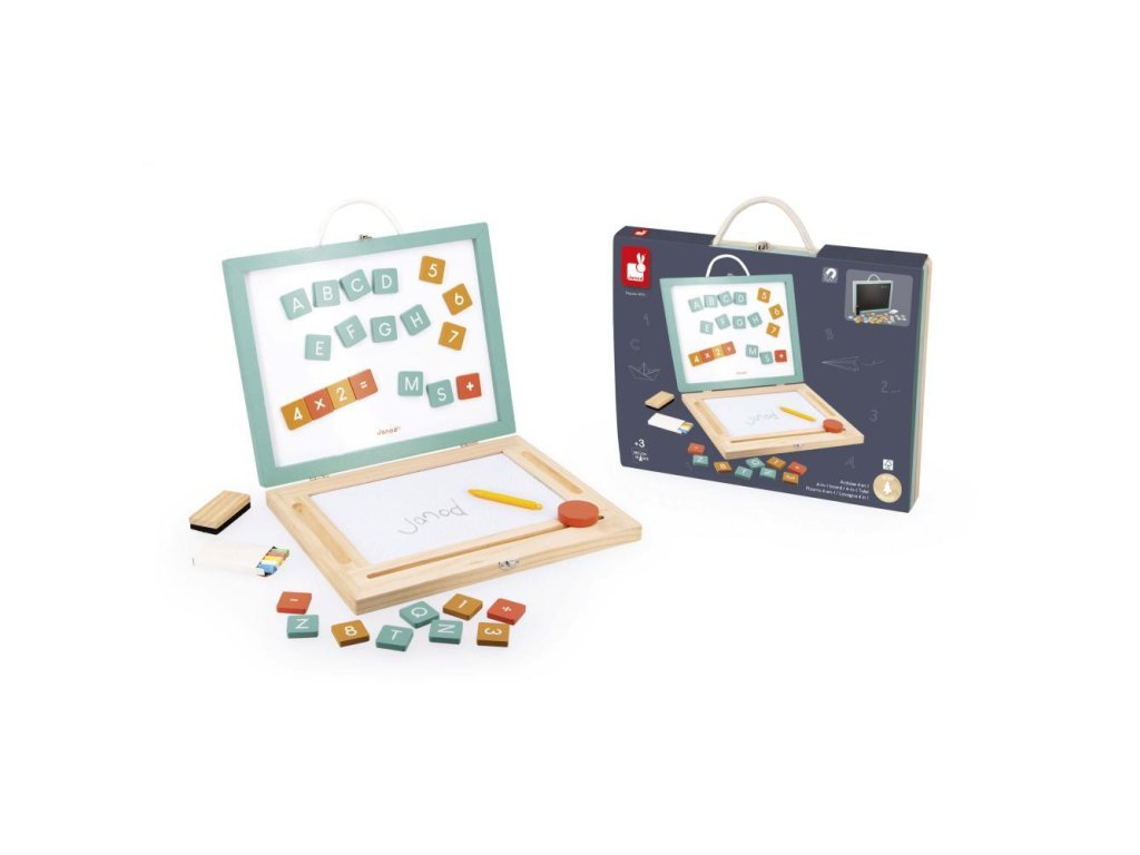 A Janod 4 az 1-ben táblája egy sokoldalú és oktató játék kisgyermekek számára.