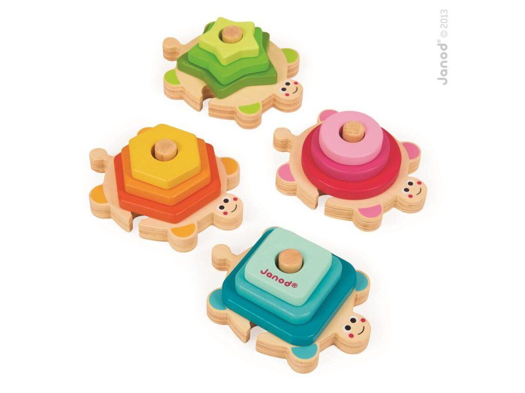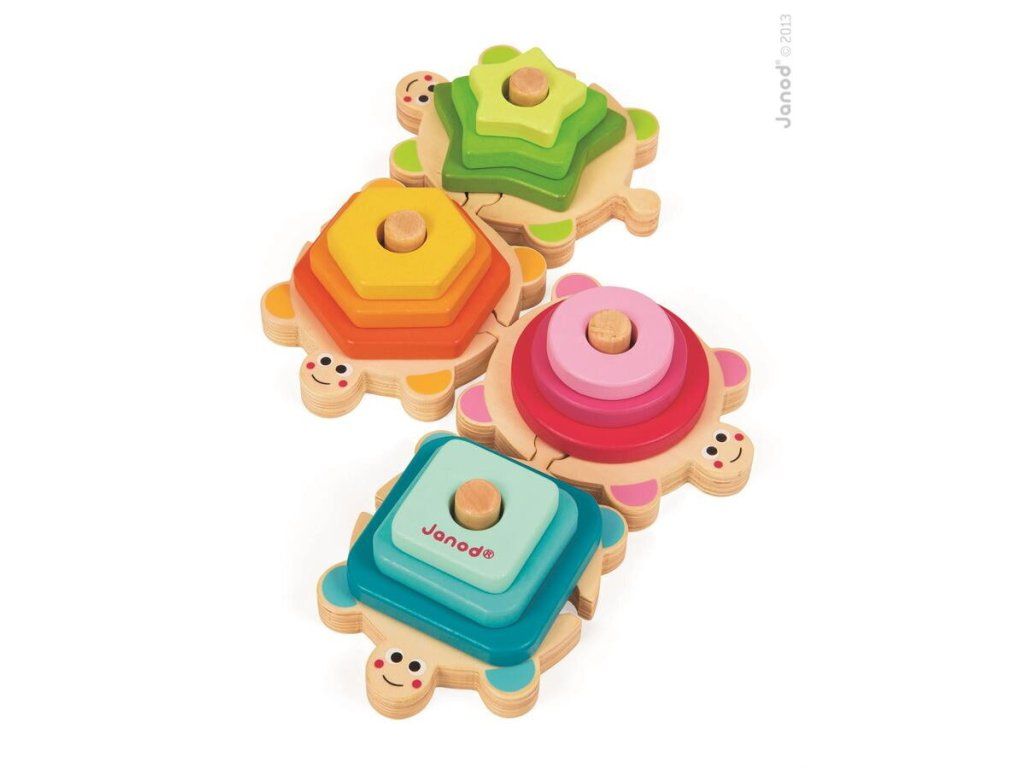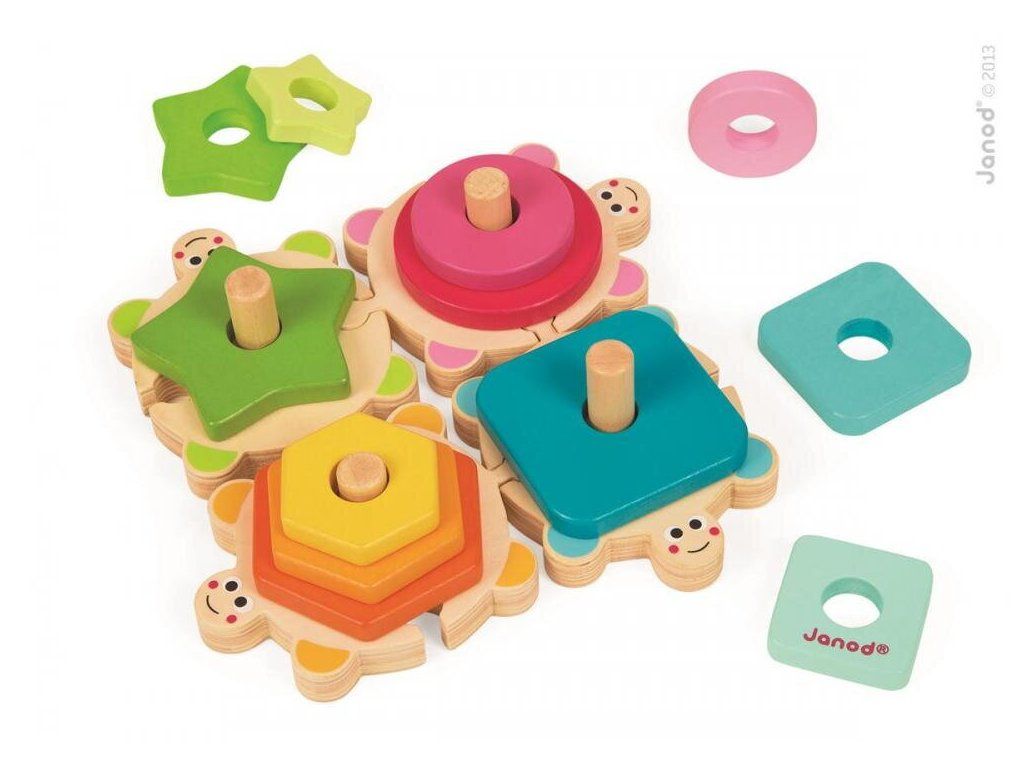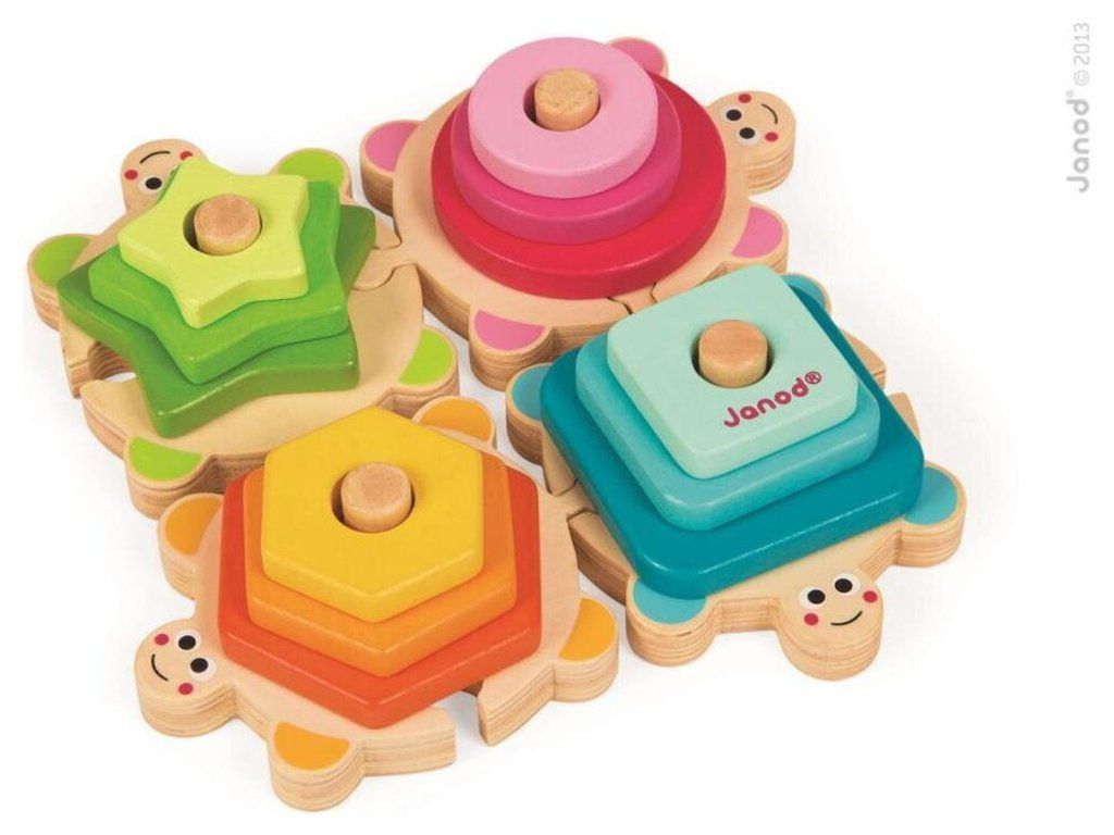 Janod Fa építő és illesztő teknősök Formákat és színeket tanulunk