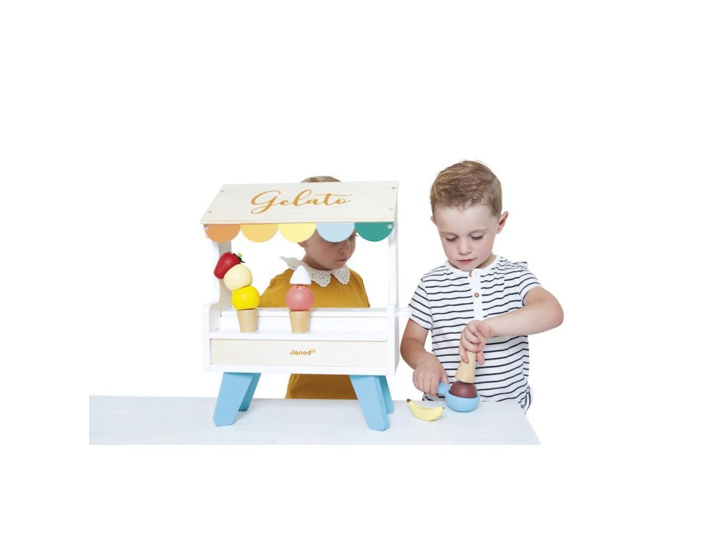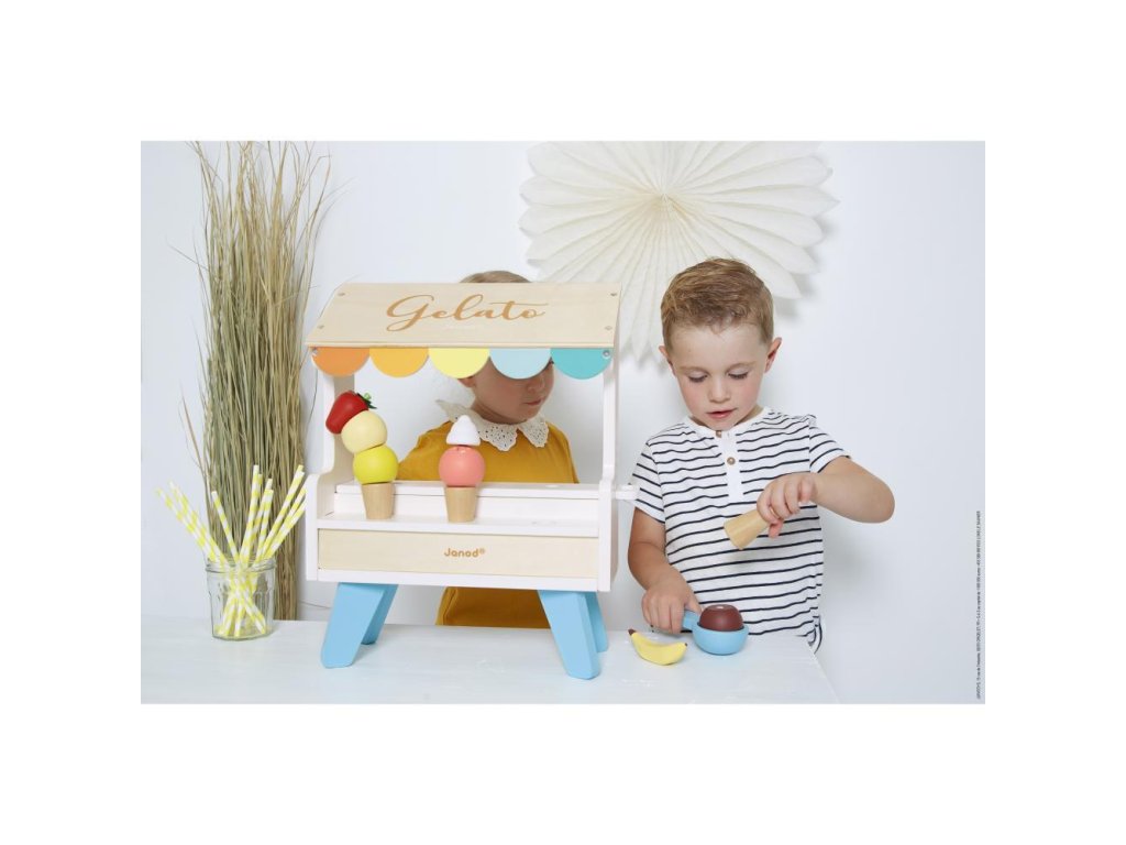 Ez a varázslatos játék ösztönzi a kreativitást, támogatja a szerepjátékot és fejleszti a képzelőerőt. A fagylaltos stand könnyen elhelyezhető az asztalon. A gyerekek úgy tehetnek, mintha fagylaltot árulnának vagy éppen vásárolnának, és utánozhatják a felnőtteket.