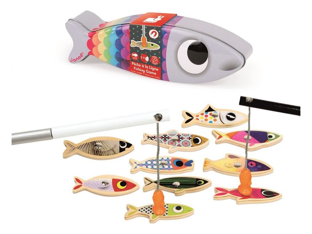 A MÁRKA szardínia mágneses játék egy nagyszerű játék gyerekeknek egy gyönyörű, szardínia alakú fémdobozban, amely más játékok tárolására is használható. Ki fogja meg elsőként a kis halat a horgászboton? A játék 2-5 éves korig alkalmas 2 játékos számára, a finommotorika, a figyelem és a koncentráció fejlesztése mellett a színek tanulására és a számolásra is alkalmas. A játék tartalmaz 10 különböző színű, mágnessel ellátott fa halacskát és 2 mágnessel ellátott horgászbotot.