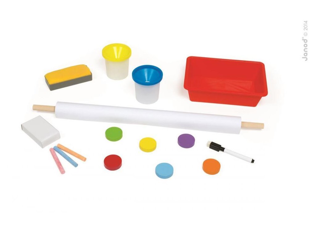 A táblához tartozó praktikus edények a vízhez használhatók, melyre a gyermeknek a táblára való festéshez szüksége lesz. A gyermek az összes érdekes kiegészítőt a tábla alatt mindkét oldalon található praktikus piros alátétre helyezheti. A mágnesekkel való manipuláció és a krétával, filctollal való rajzolás fejleszti a gyermekek motorikus készségeit.
