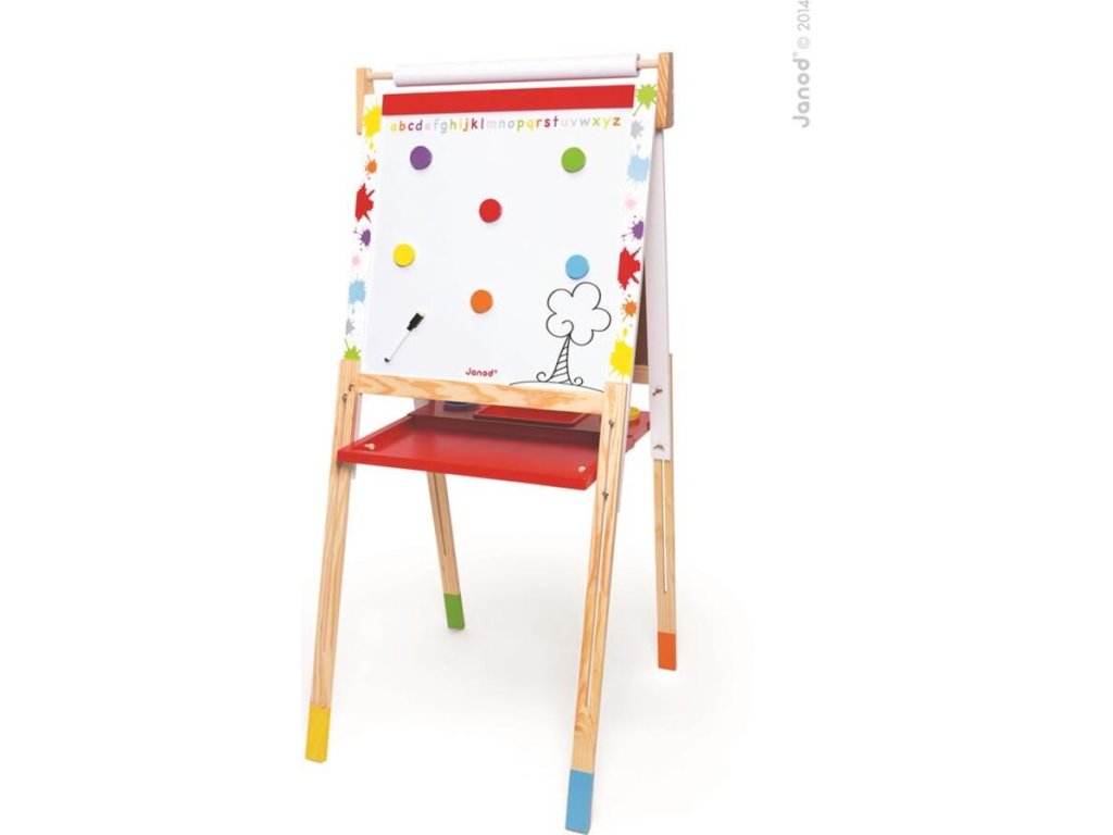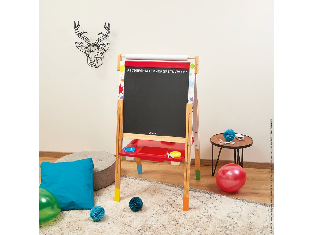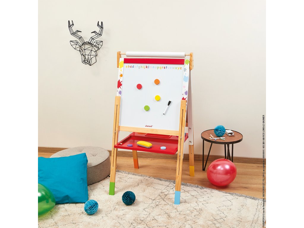 A Janod Grafitti Splash fa mágneses tábla csodálatosan állítható magasságú, így alkalmazkodik és együtt nő a gyermekkel.