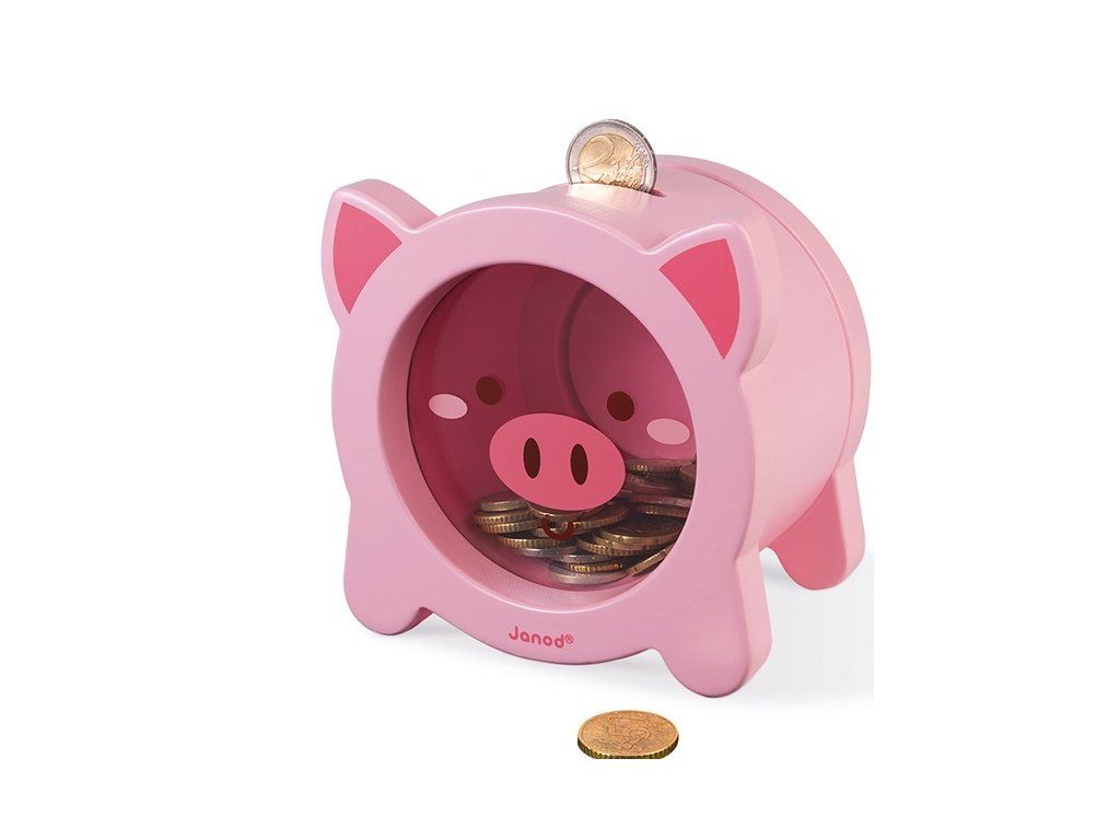 Fa pénztárca gyerekeknek Janod malacpersely Deco sorozat.A stílusos fa persely nagyszerű segédeszköz lesz a gyerekek első pénzmegtakarításához.