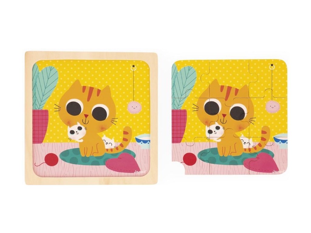 Minden kirakós 9 darabot tartalmaz, és egy mélyedést a darabok könnyű eltávolításához.