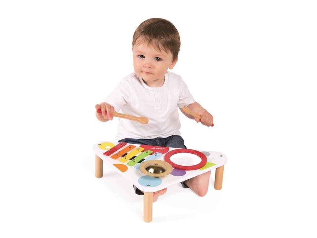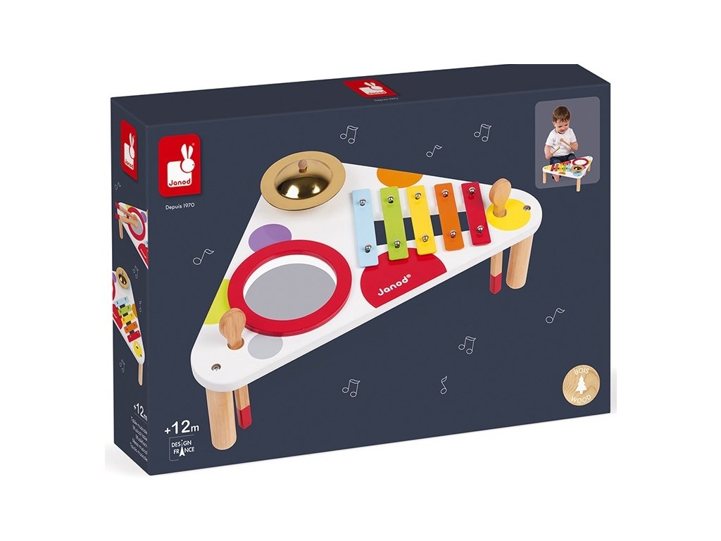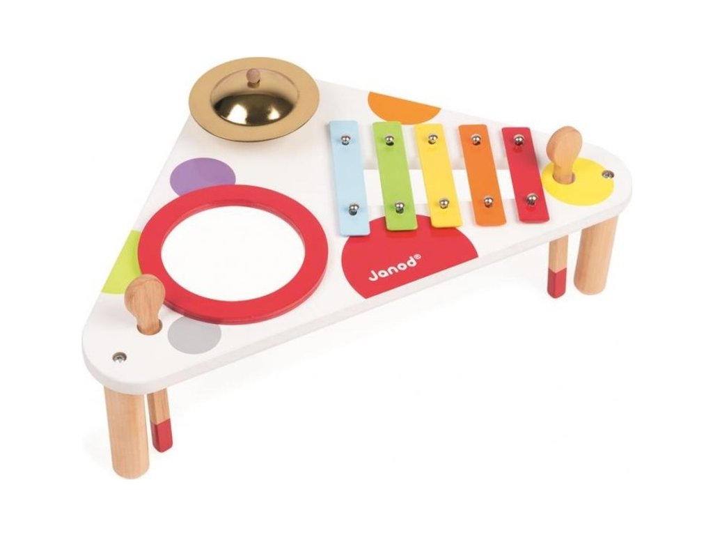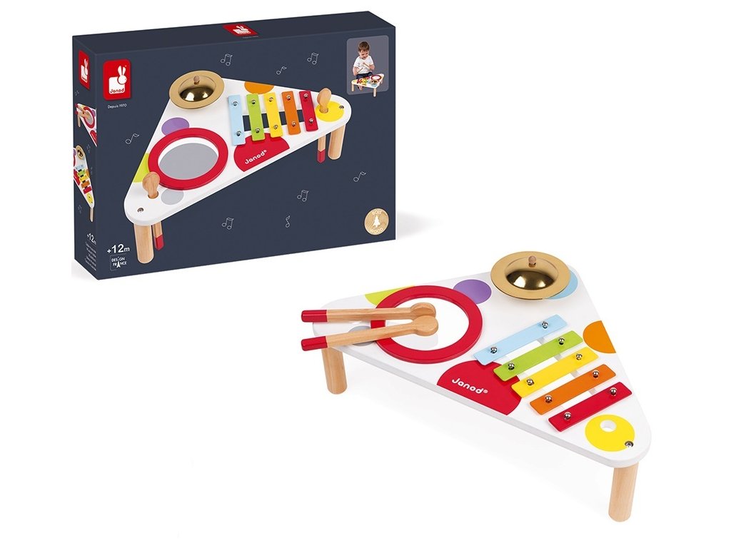 Janod Fa zenélő asztal Confetti xilofon-dob-cintányérok