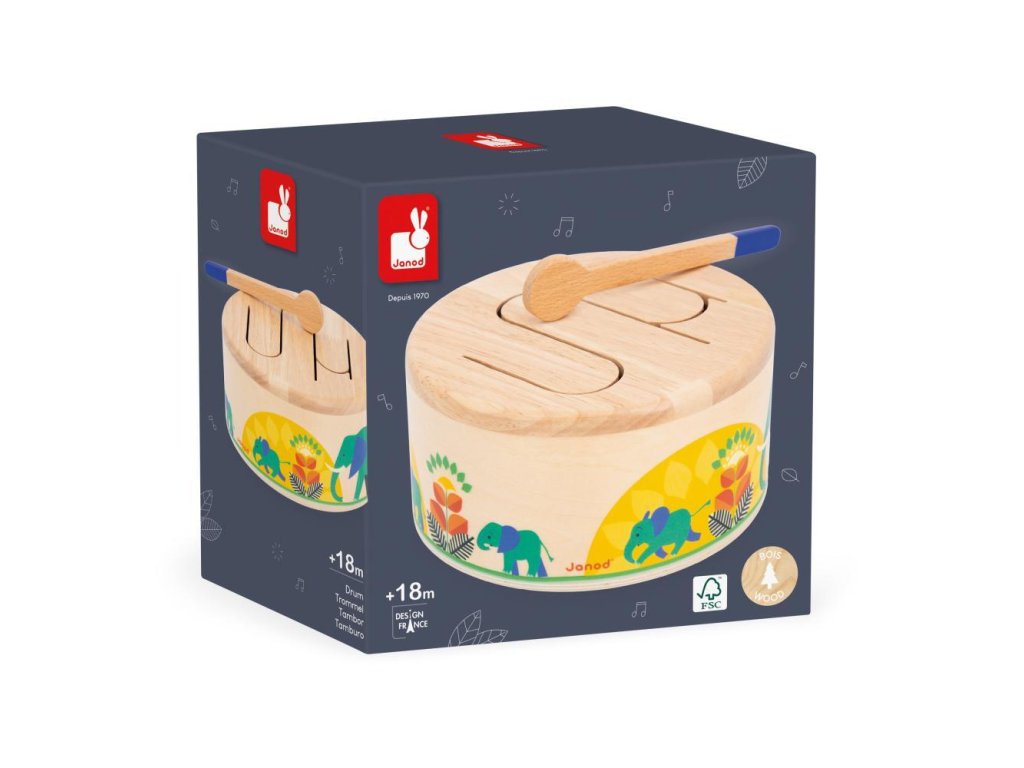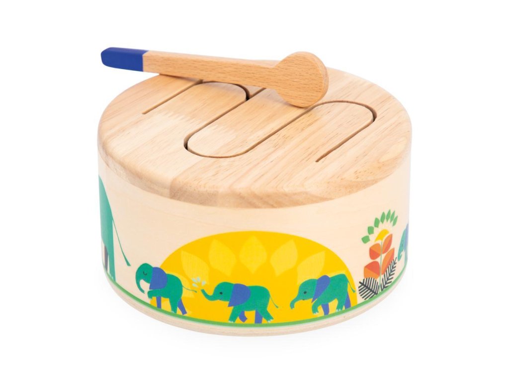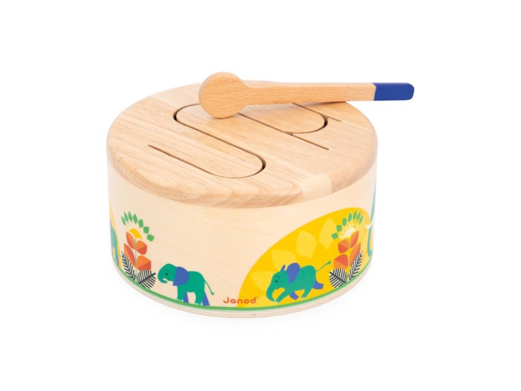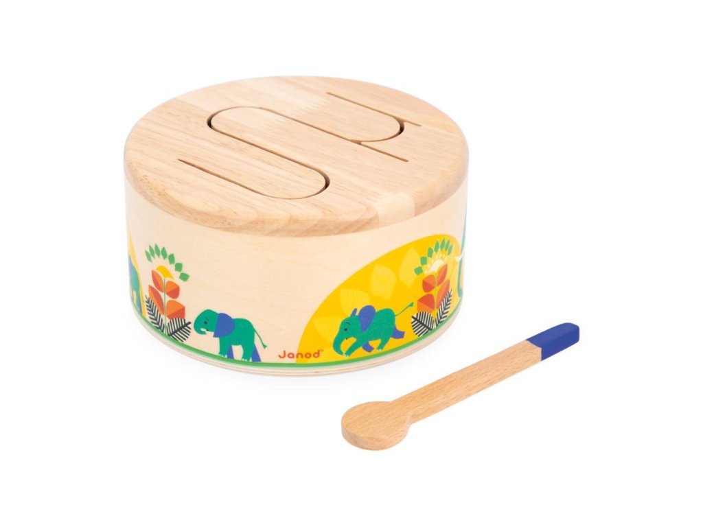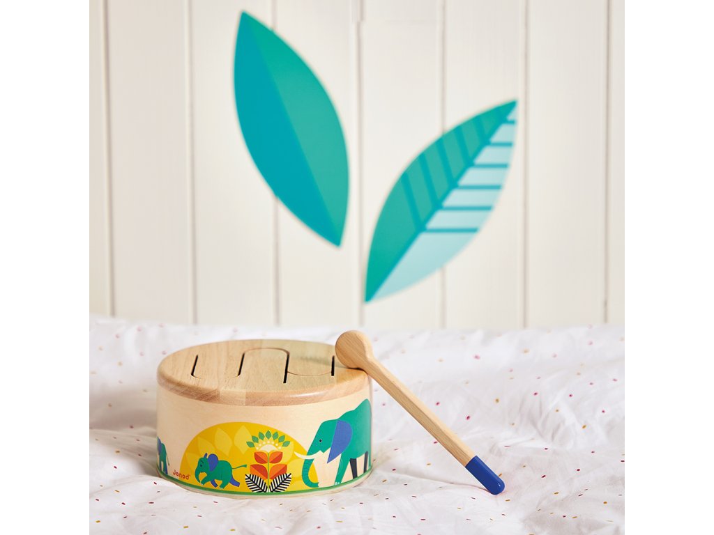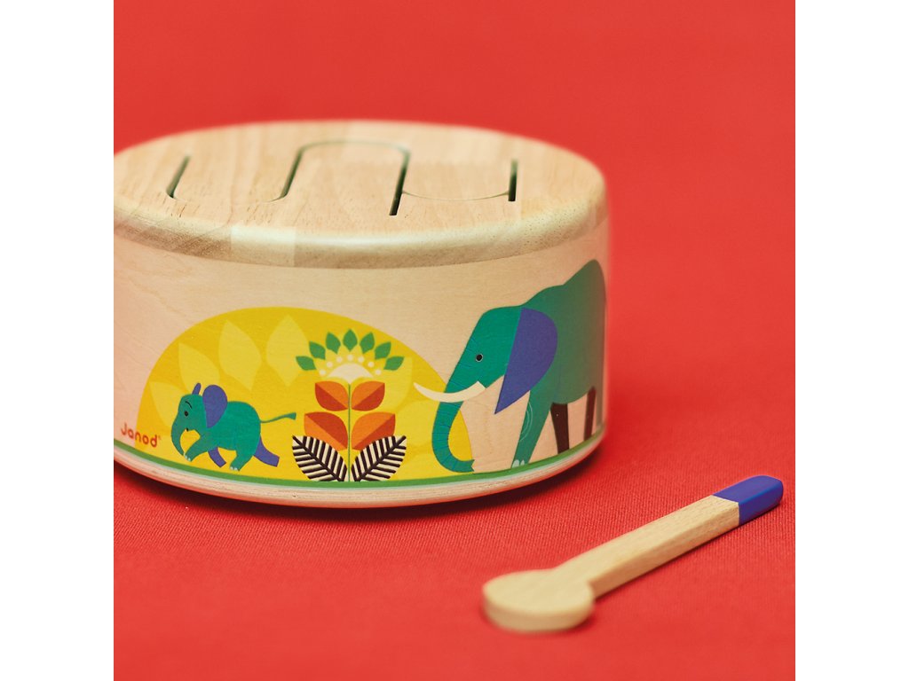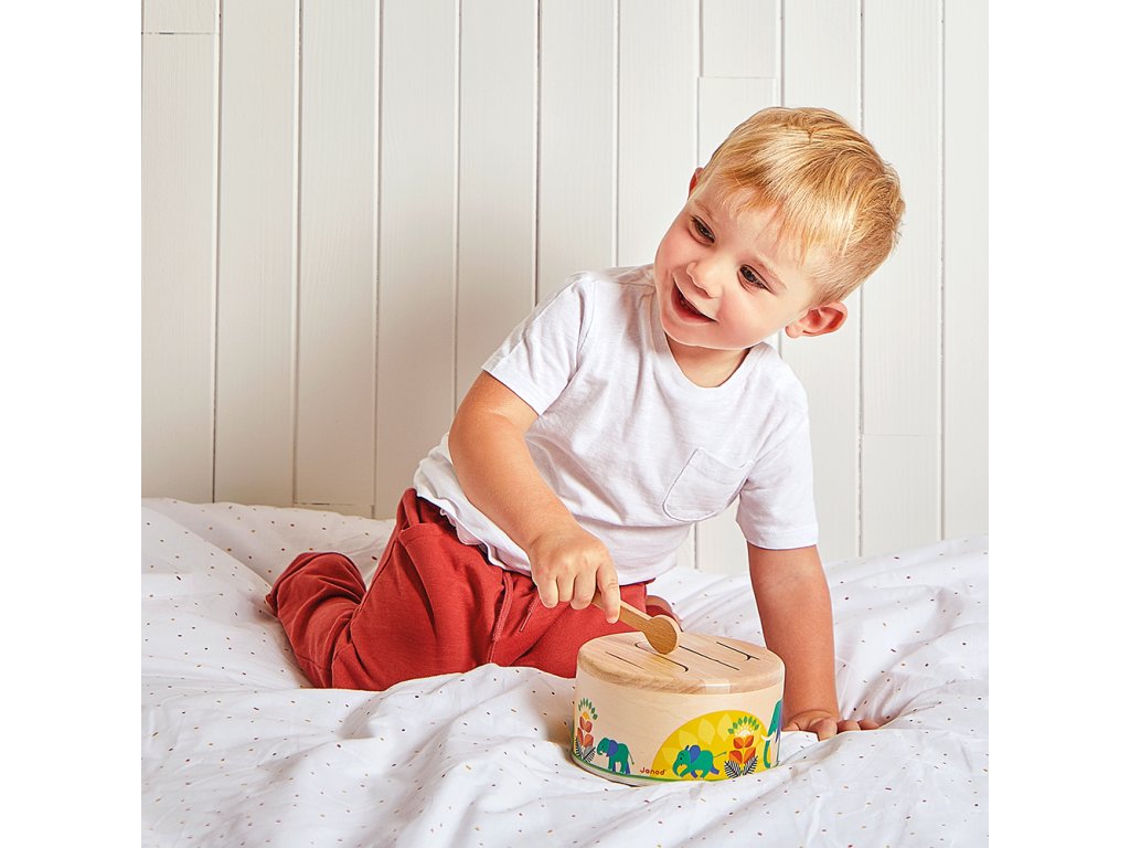 Rat-a-tat-tat! Ez a fából készült dob segít gyermekének fejleszteni a ritmusérzékét és a szem-kéz koordinációját a csomagban található fa pálcikának köszönhetően. Ez a lekerekített játékutánzat könnyen hordozható és megszólal, amikor a gyermek kopogtatja. Hullámos mintázata lehetővé teszi a különböző hangok rezonálását, ideális a gyermekek ritmusokkal és hangokkal való megismertetésére.