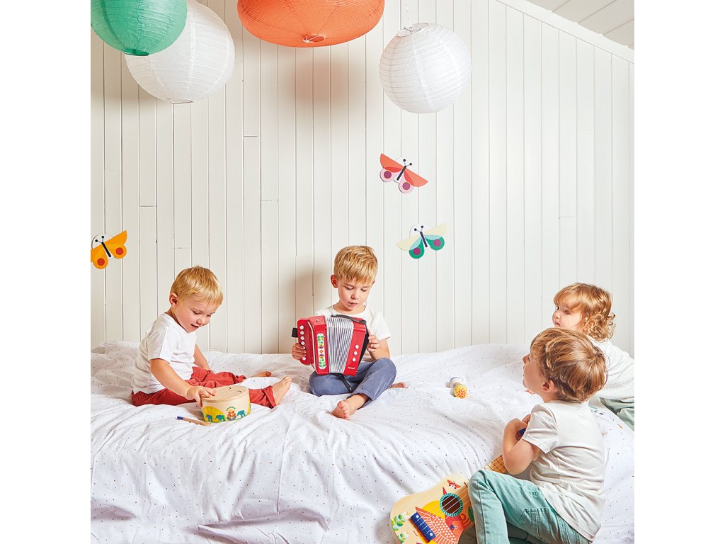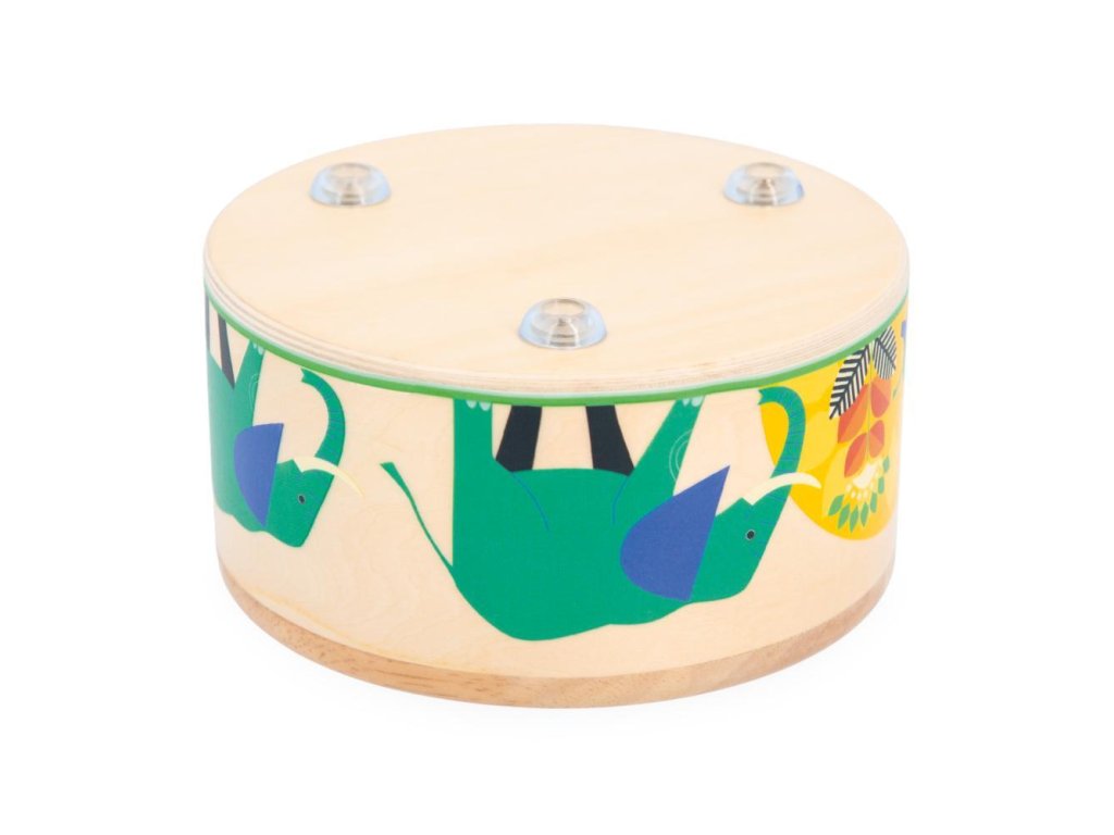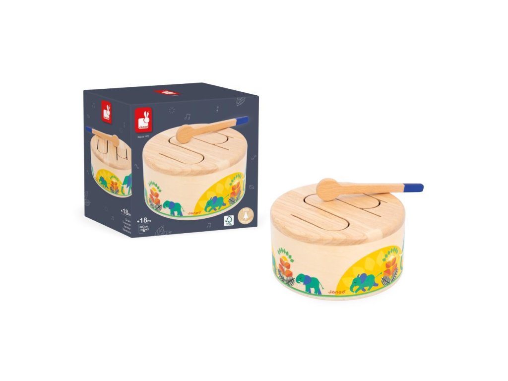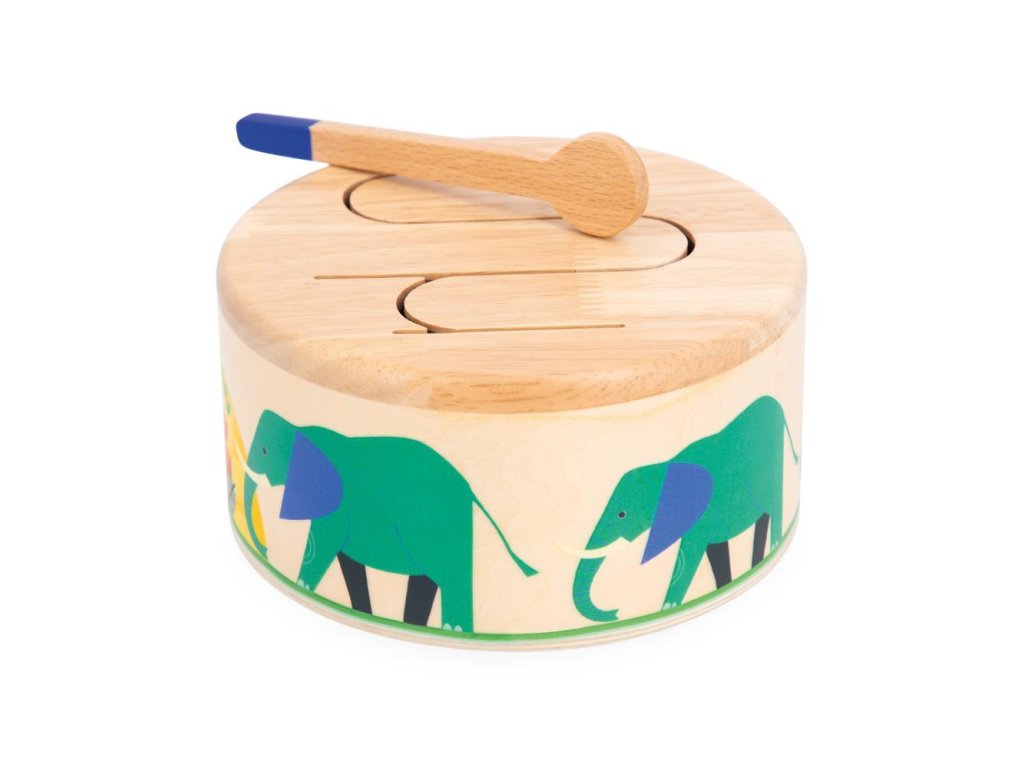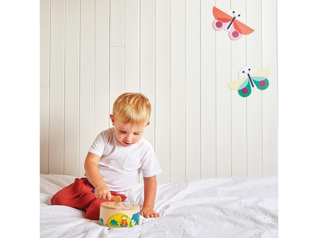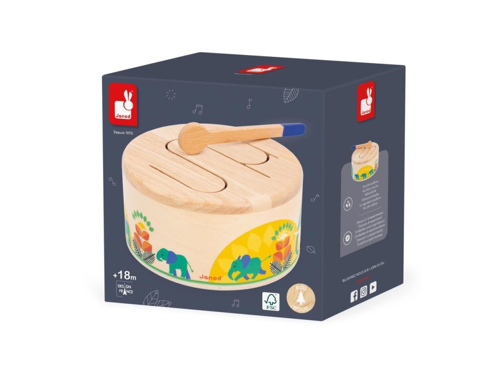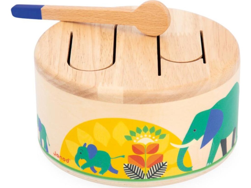 Rat-a-tat-tat! Ez a fából készült dob segít gyermekének fejleszteni a ritmusérzékét és a szem-kéz koordinációját a csomagban található fa pálcikának köszönhetően. Ez a lekerekített játékutánzat könnyen hordozható és megszólal, amikor a gyermek kopogtatja. Hullámos mintázata lehetővé teszi a különböző hangok rezonálását, ideális a gyermekek ritmusokkal és hangokkal való megismertetésére.