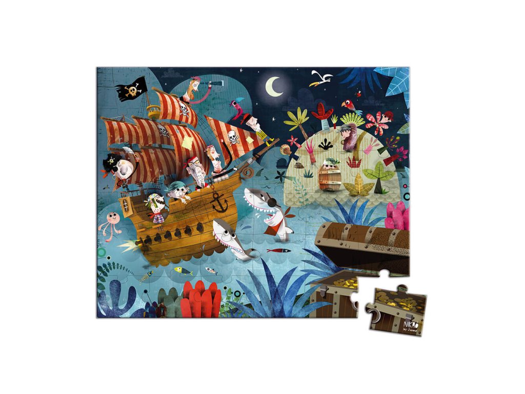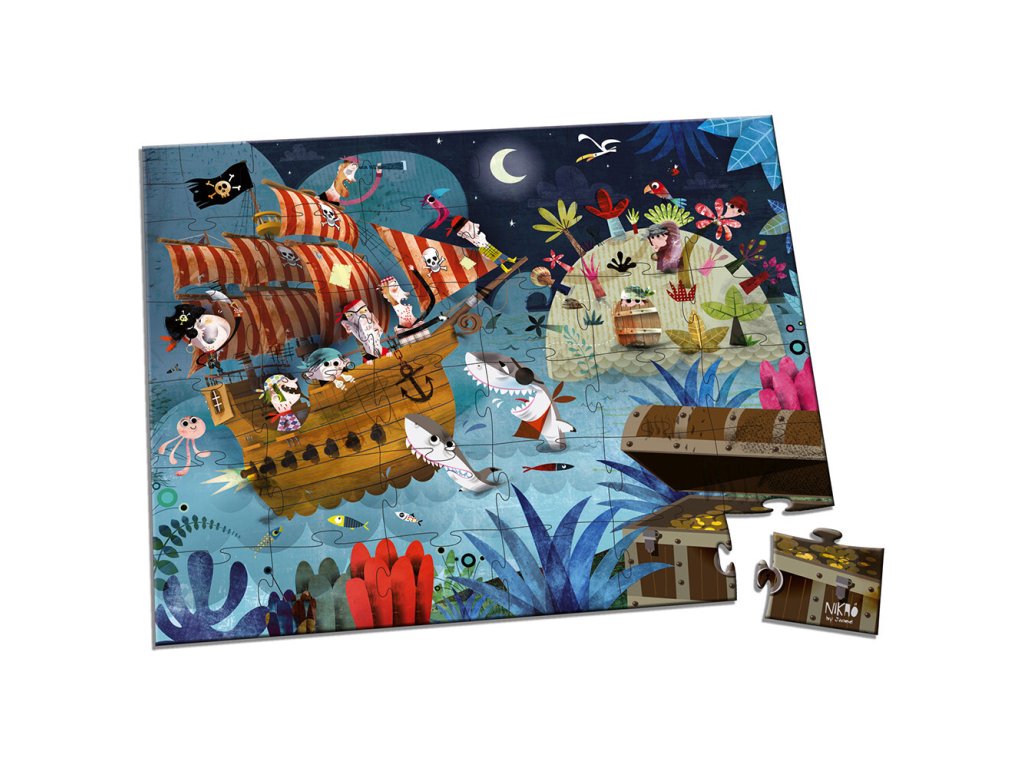 Csatlakozz a kalózokhoz, és élj át velük hihetetlen kalandokat a kincskeresés során! A kalózmintás, gyönyörűen illusztrált puzzle biztosan minden kis fiú tetszését elnyeri, a puzzle eredeti és praktikus bőröndben van csomagolva, amely otthonra és utazásra is alkalmas.