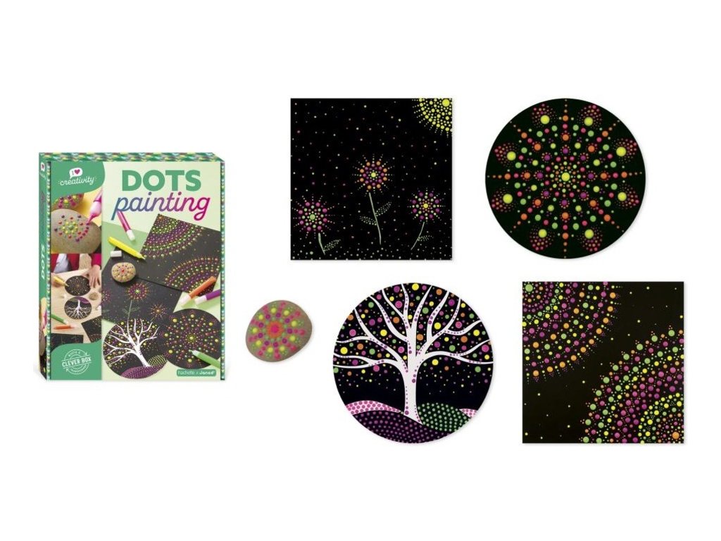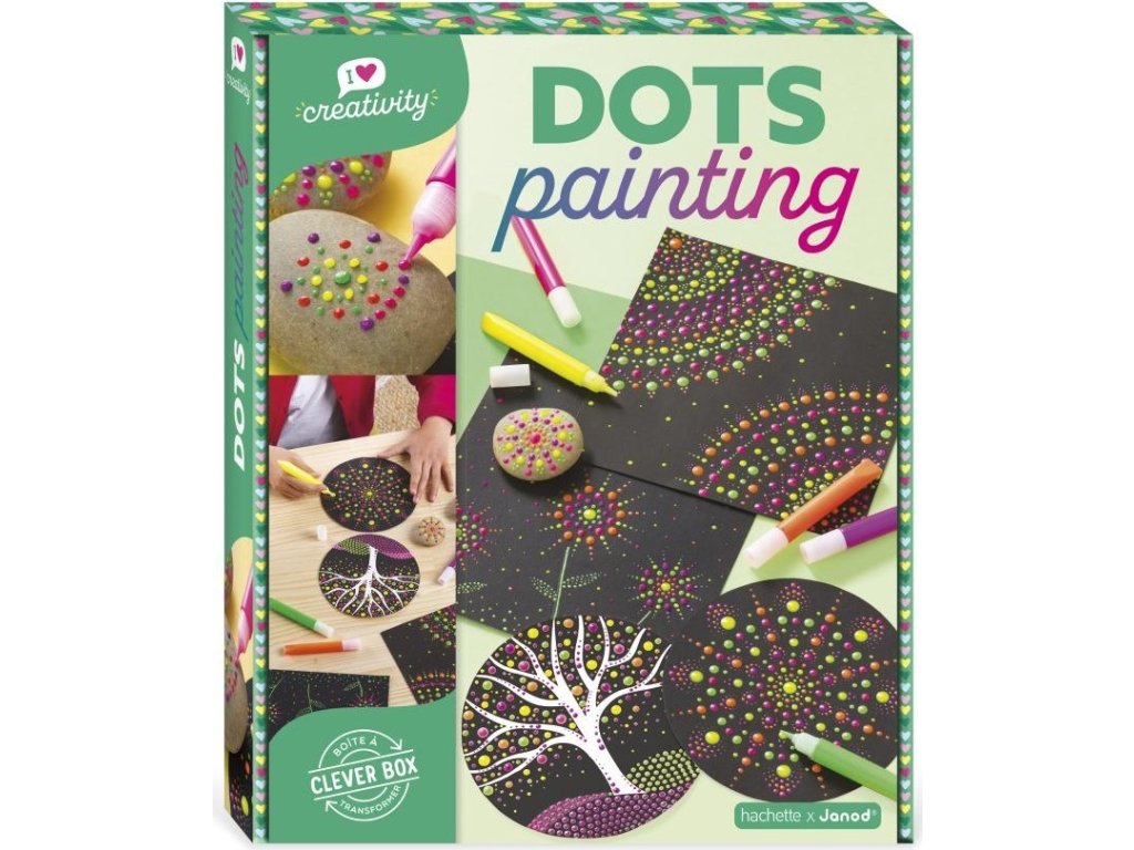 Ez a készlet az I Love Creativity sorozat része, amely mindent megad a nagyobb gyerekeknek, amire szükségük van kreativitásuk kifejezéséhez! Ennek a kreatív készletnek az a célja, hogy pontozási technikával képeket fessen kőre vagy rajzokra.