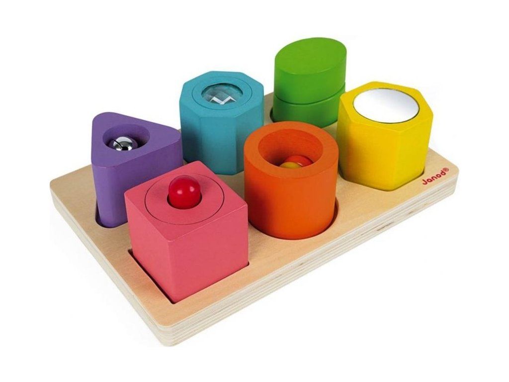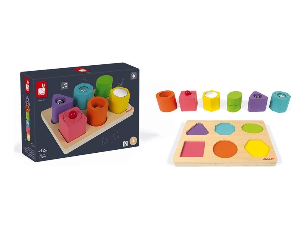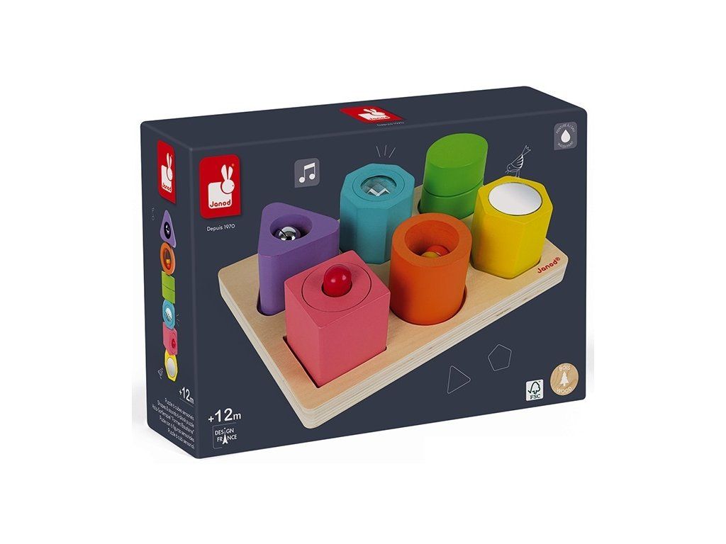 Fa behelyező játék a legkisebb gyerekeknek, amellyel különböző formákat és színeket tanulnak. Minden elem valamilyen hangot ad ki, vagy más aktív eleme van, mint például a tükör és hasonlók.