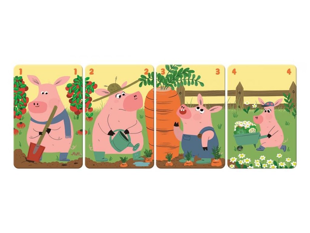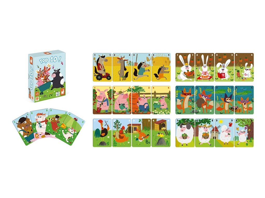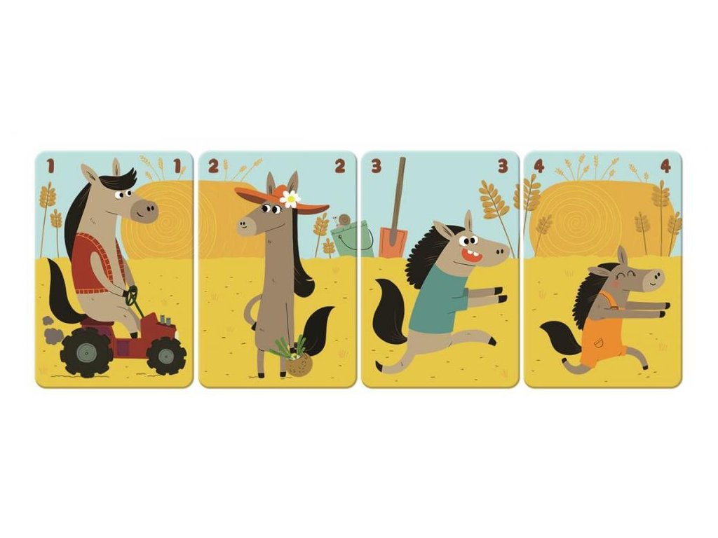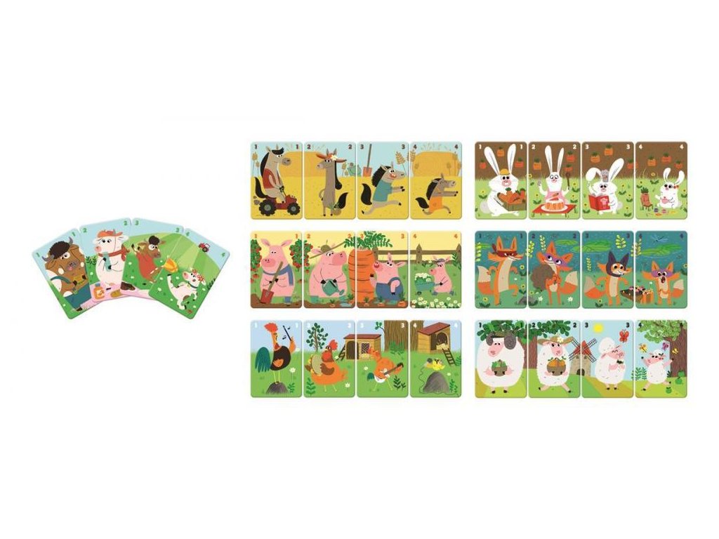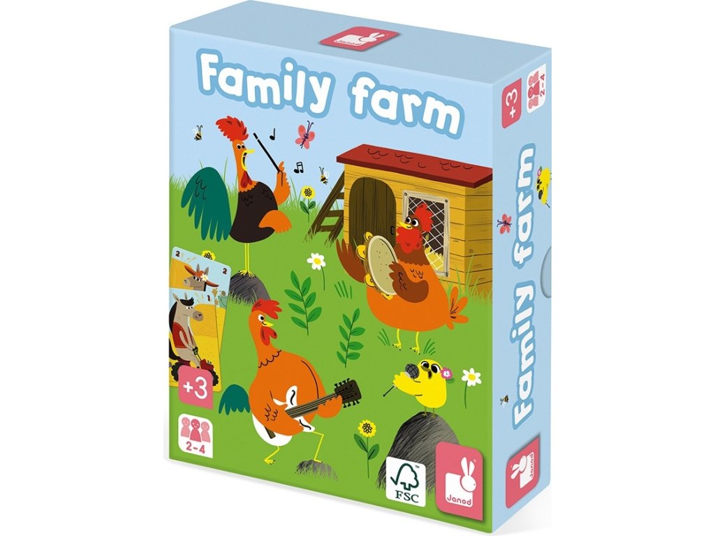 A Janod Családi Gazdaság kártyajáték kvartett stílusban 3-7 éves gyermekek számára készült, 2-4 játékos részére.