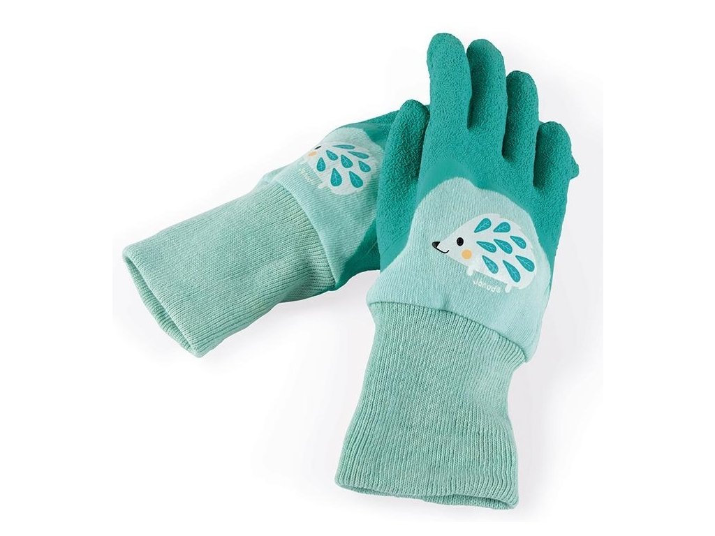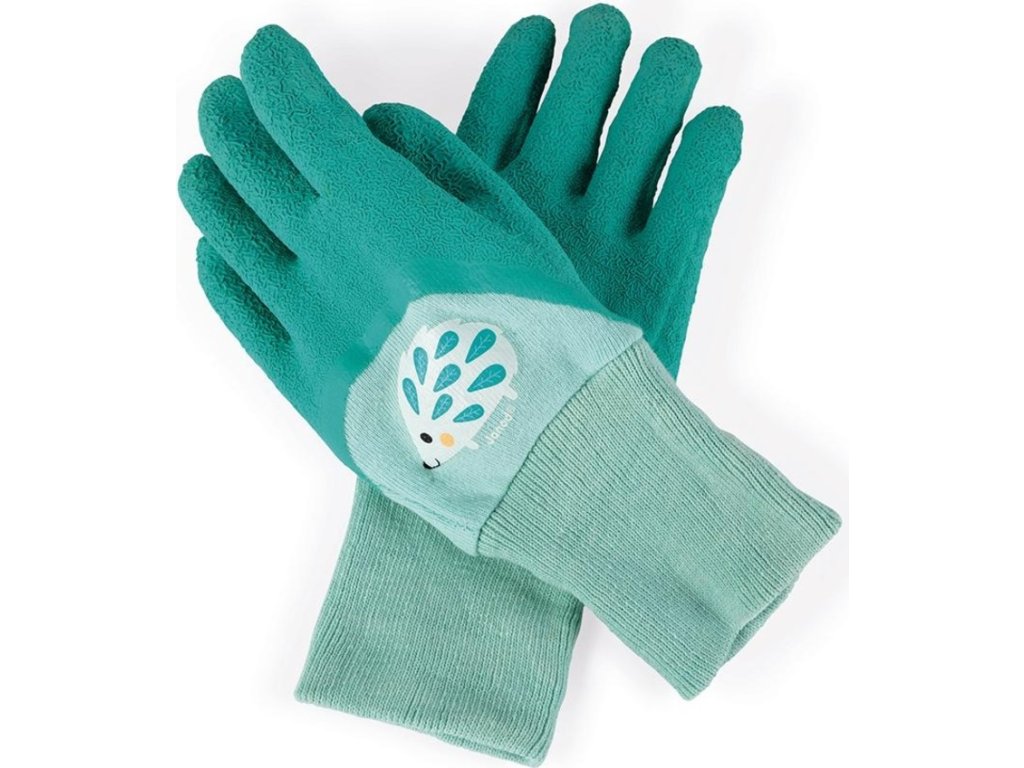 Gyönyörű, minőségi gyermek kertészeti kesztyű lányoknak és fiúknak, szép zöld színkombinációban, sün motívummal.