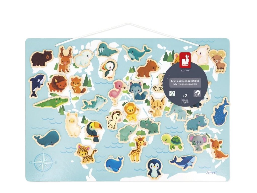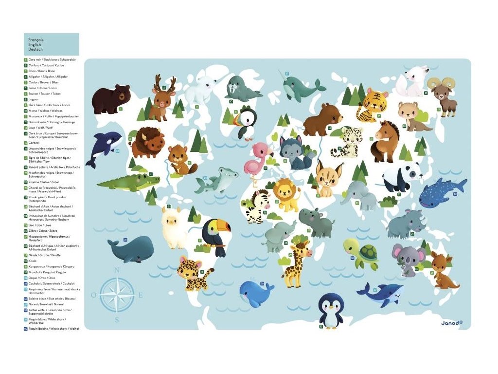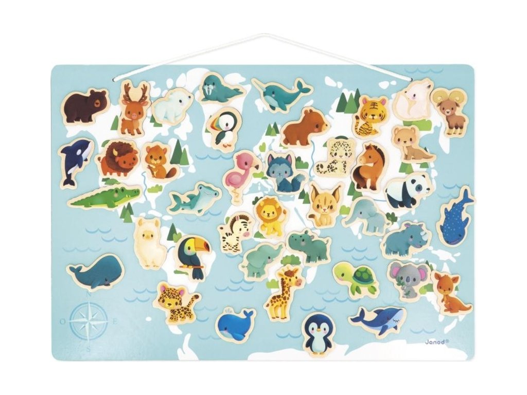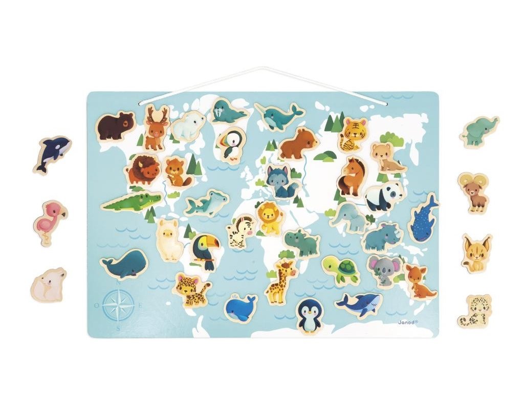 Janod Mágneses játék gyerekeknek Állatok világtérképe 40 db mágnessel