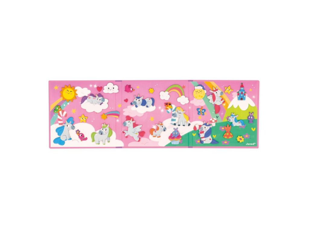 Nyissa ki a könyvet, és talál benne egy nagy mágneses hátteret és 30 mágnest, amelyek unikornisokat és dekorációkat ábrázolnak, amelyek tökéletesek bármilyen történet jelenetének kiegészítésére!