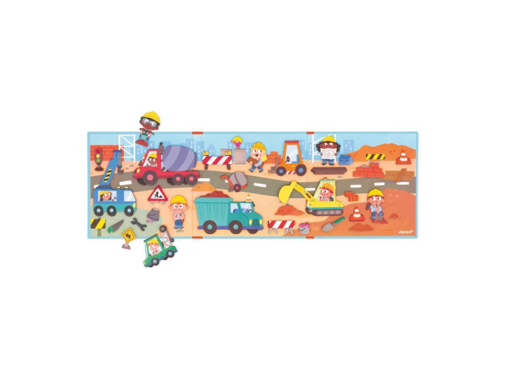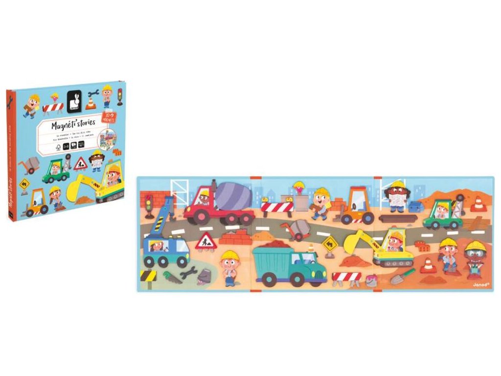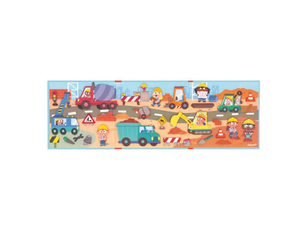 Nyisd ki ezt a mágneses könyvet, és merülj el egy hatalmas építkezésen! Vigyázat! Forró rakomány halad el! A betonkeverő mozgásban van, és a légkalapács sem marad le. Szerencsére itt van az építész, hogy segítsen megszervezni a káoszt!
