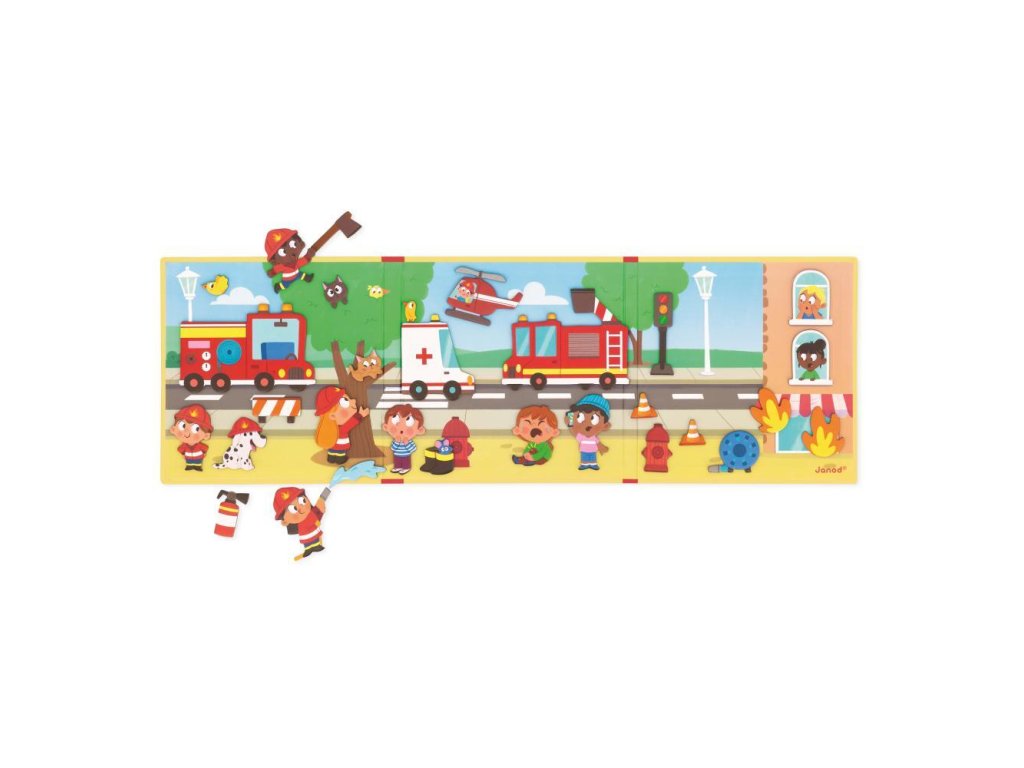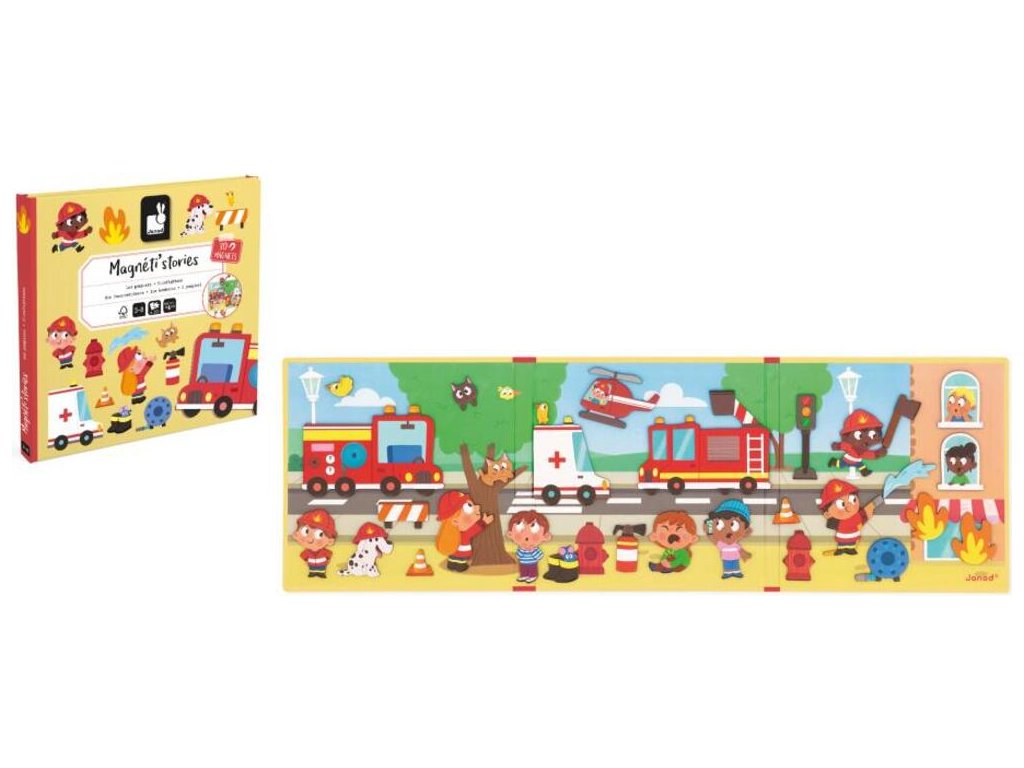 Nyisd ki ezt a bájos könyvet, és fedezz fel egy nagy mágneses hátteret és 30 mágnest, amelyek segítenek a kisgyermekeknek sok tűzoltókkal kapcsolatos történetet kitalálni.