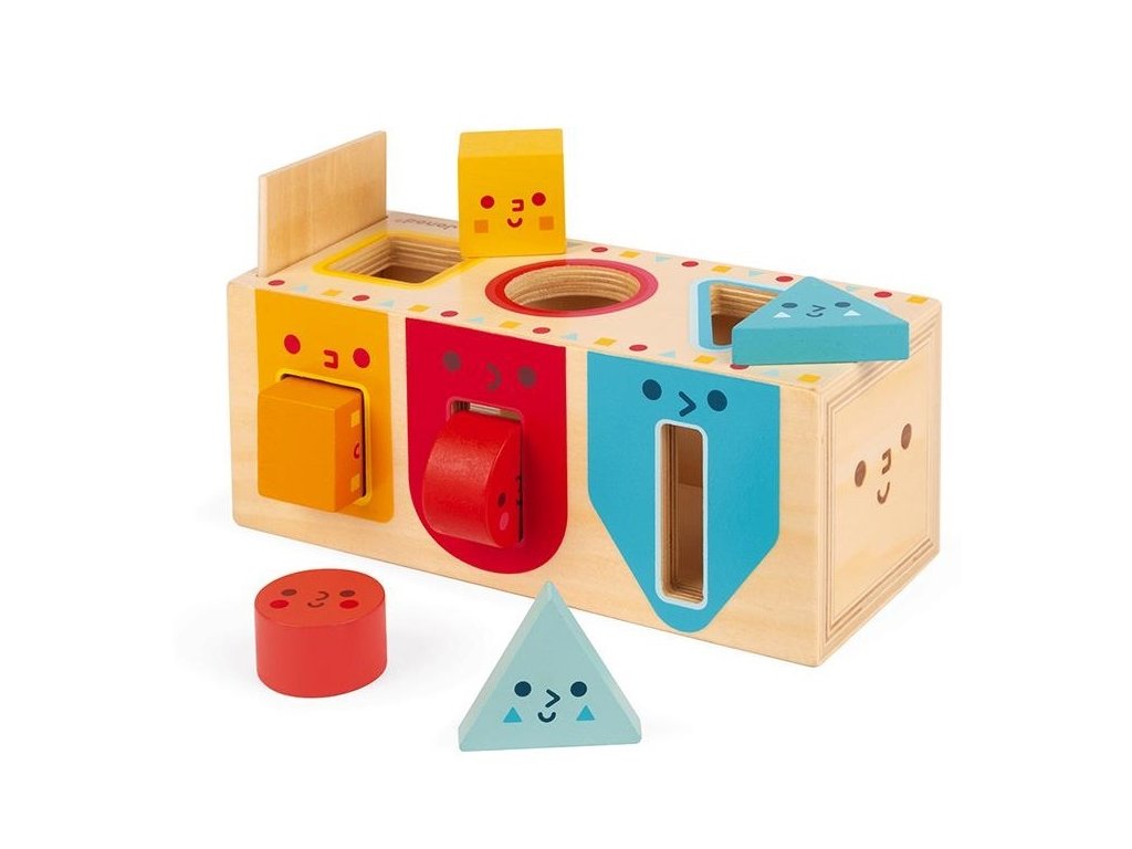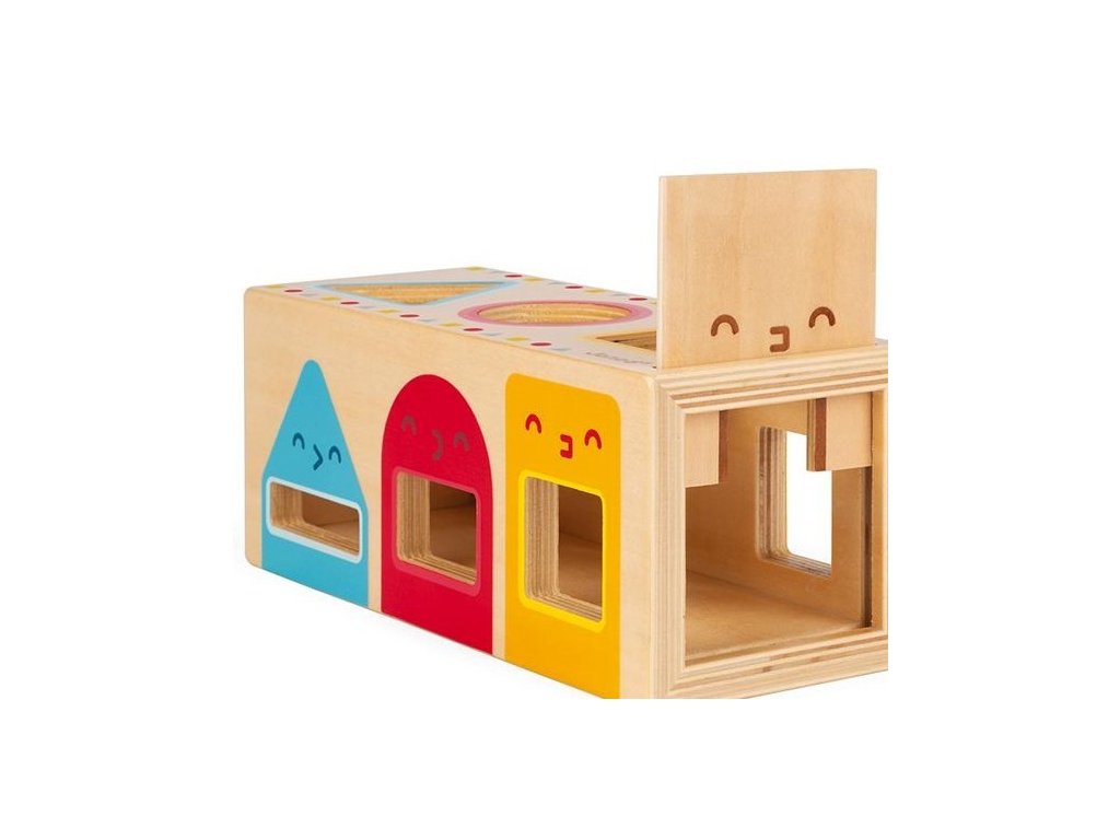 Ez a gyönyörű, ügyesen megtervezett fa doboz ideális arra, hogy a gyermekei ne csak a színeket, hanem a geometriai formákat (háromszög, kör, négyzet) is megtanulják.