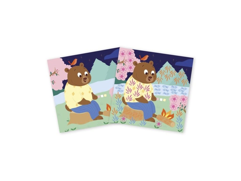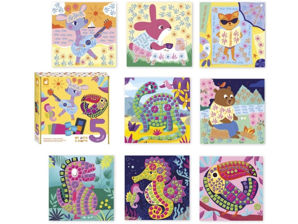 A képek közül 4 habmozaikkal díszíthető, további 4 pedig ujjfestékkel és bélyegzőkkel egészíthető ki.