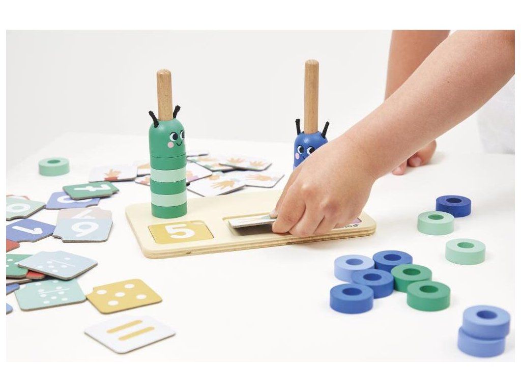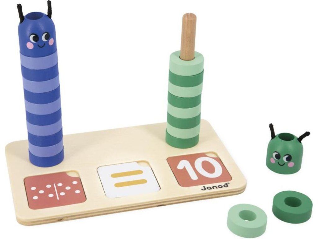 Az oktató fából készült játékot pedagógussal együttműködve fejlesztették ki, és már óvodás gyermekek számára is alkalmas. Ki más segíthetne gyermekének megtanulni a számokat és összehasonlítani azokat, mint két gyönyörű hernyó?