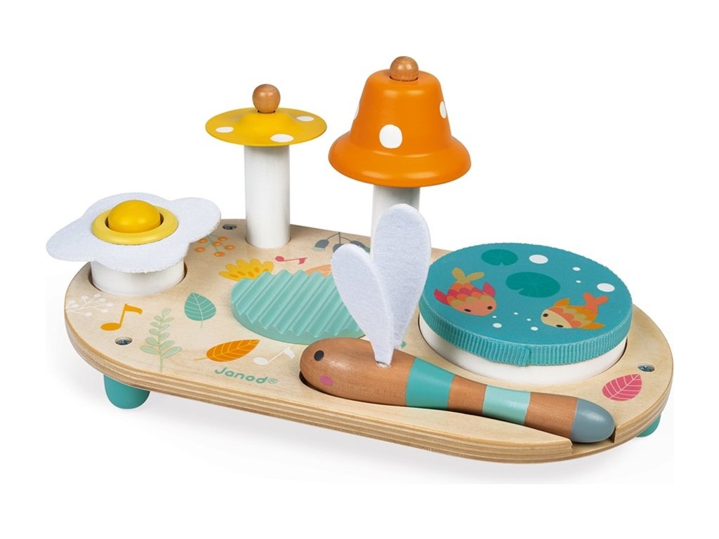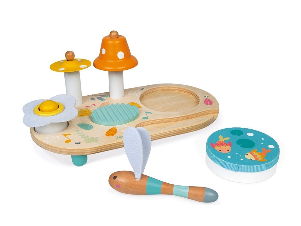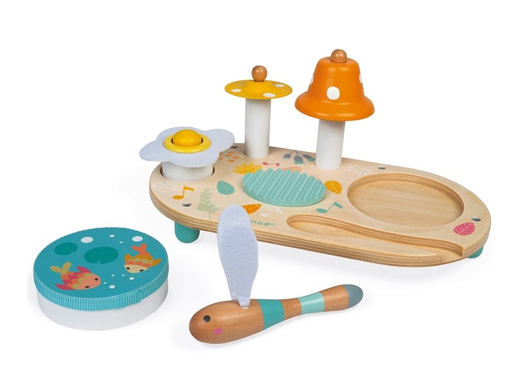 Janod Pure sorozatú fa zenés asztal gyerekeknek.Gyönyörű, színes zenés asztal a legkisebb zenészek számára.