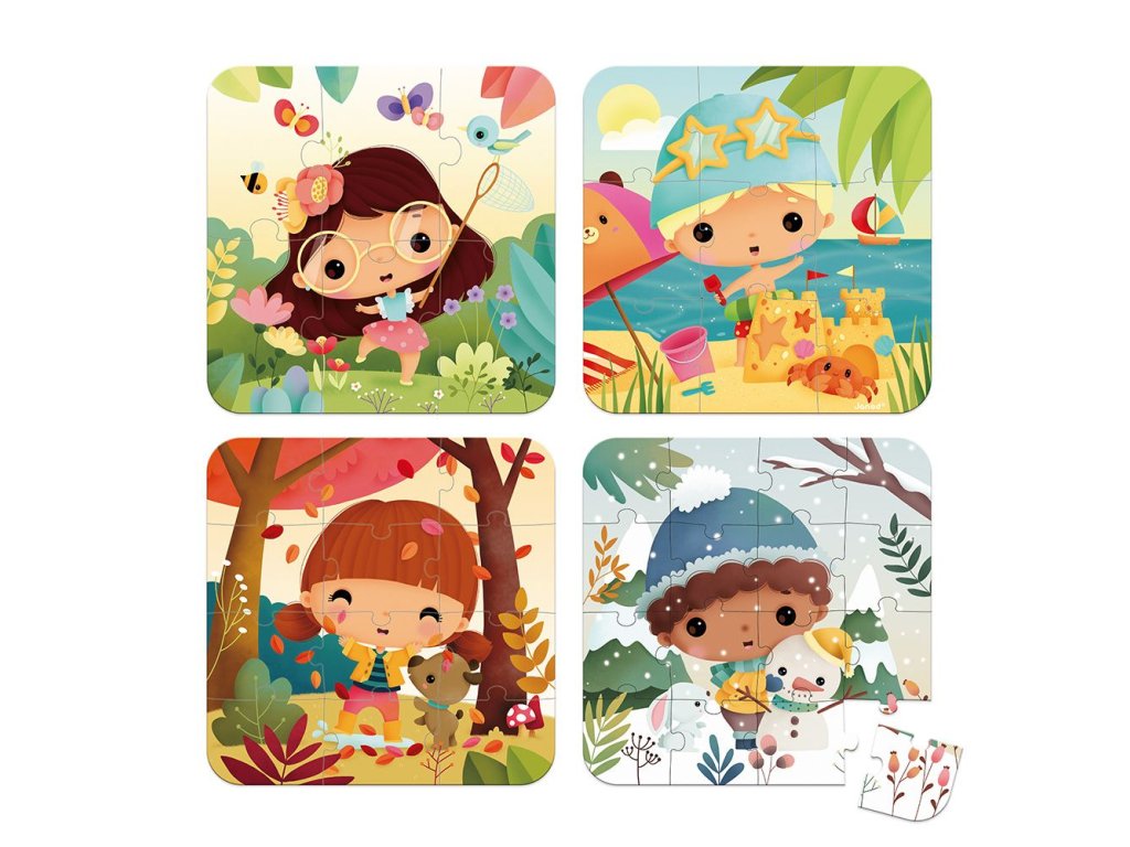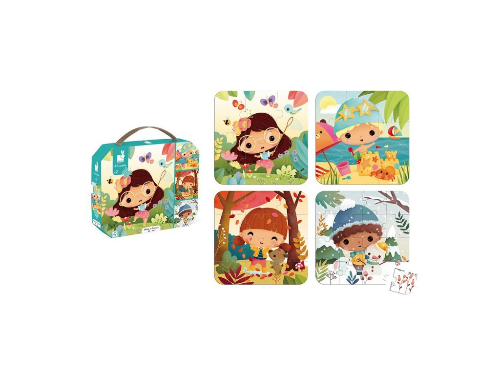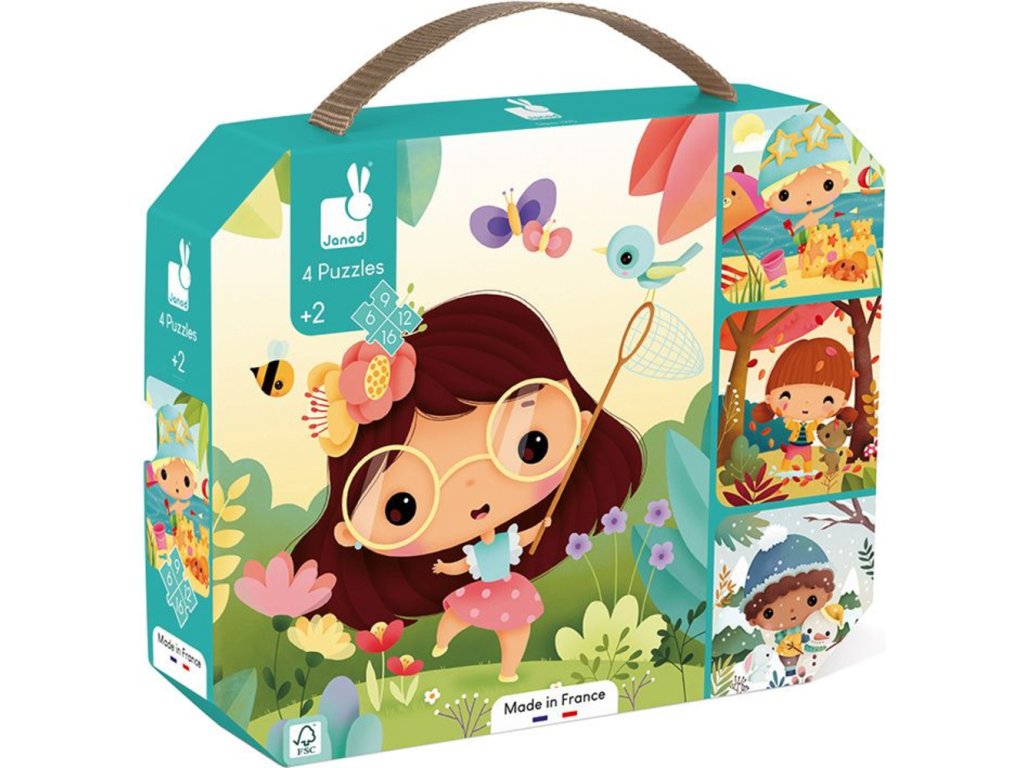 Janod Puzzle bőröndben 4 az 1-ben Évszakok 6-9-12-16 db