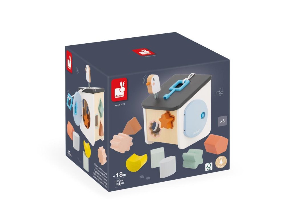 Ez a teljes és tartós babajáték támogatja a manipulációs és játék készségeket. A formák eltűnése a házban, majd újra megtalálása mindig érdekelni fogja a gyermeket! Ez a korai tanulást segítő játék FSC™ tanúsítvánnyal rendelkező fából készült, és a Sweet Cocoon kollekciónk része. ?