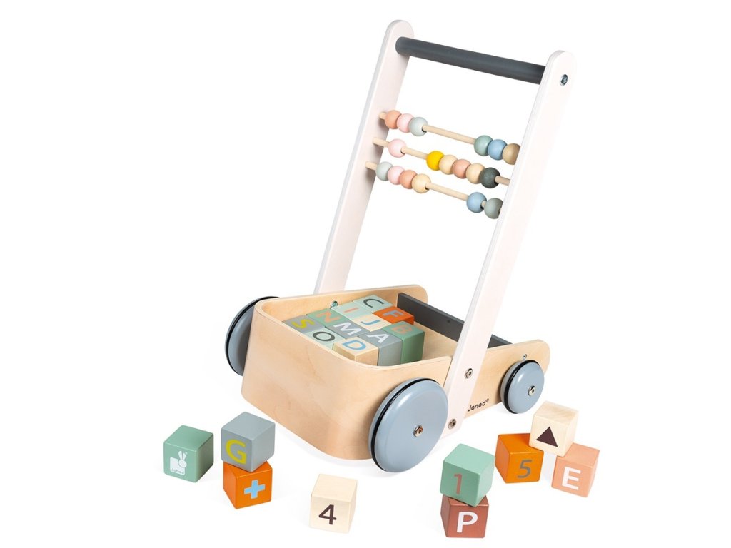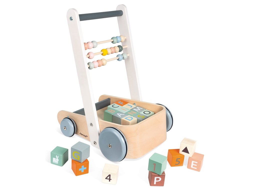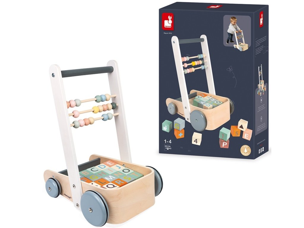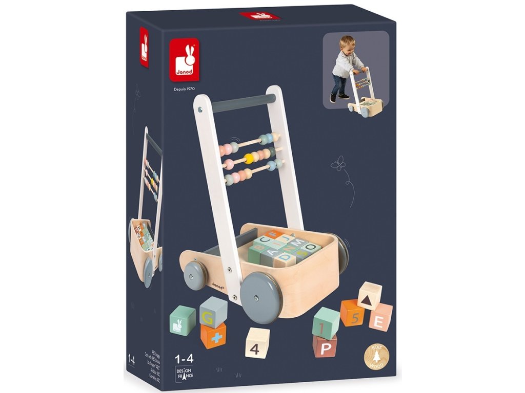 Janod Sweet Cocoon járássegítő számolóval és 20 db-os kockákkal