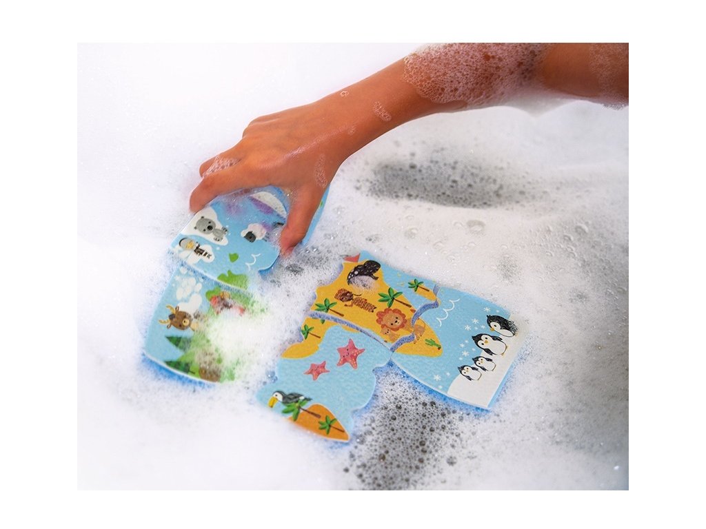 A puzzle darabok úsznak a vízen, és sok szórakozást nyújtanak fürdés közben. Felhelyezhetők és felrakhatók csempékre.
