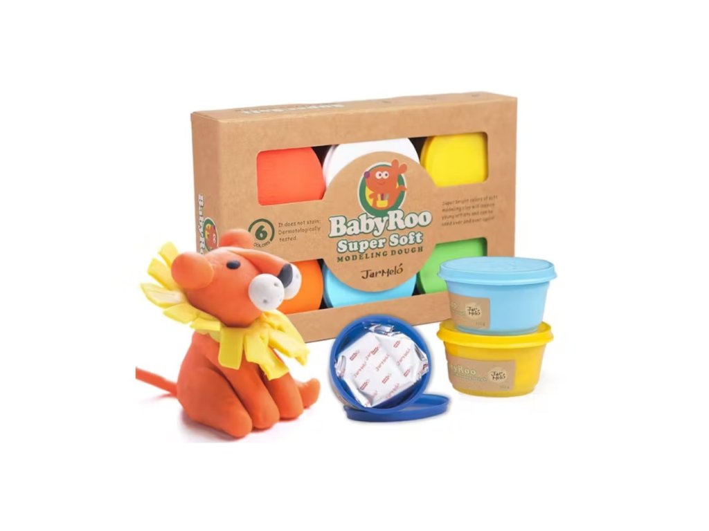 Gyurma 6 db Puha, természetes és játékos – ideális a kis kezekbe A Jarmelo gyurma olyan finom, mint egy felhő – minőségi lisztből készült, kémiai színezékek nélkül. A készlet 6 színt tartalmaz, amelyek keverhetők, formázhatók és visszaalakíthatók eredeti formájukba. Ideális a gyermekek első gyurmaélményéhez.Miért nagyszerű ez a gyurma? 6 élénk szín (zöld, narancs, piros, sárga, fehér, kék)Kémiai színezékek nélkül, nem mérgező, bőrgyógyászatilag tesztelt és 18 hónapos kortól alkalmasMegőrzi rugalmasságát, egy kevés víz is elég, ha enyhén kiszárad – többször is használhatóFejleszti a finommotorikát, a kreativitást, a színérzékelést – ideális tevékenység otthoni projektekhez vagy óvodába