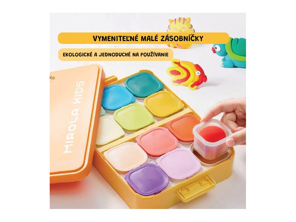Gyurma dobozban 24 db Puha, természetes és játékos – ideális ügyes kezeknek. A Jarmelo gyurma olyan finom, mint egy felhő – minőségi lisztből készült, kémiai színezékek nélkül. A készlet 24 színt tartalmaz, amelyek keverhetők, formázhatók és visszaalakíthatók eredeti formájukba. Ha azonban a gyurmát a levegőn hagyja, megkeményedik, és nem lehet tovább dolgozni vele. Ily módon azonban a gyerekek a puha alkotásokból valós, kemény figurákat vagy más műveket hozhatnak létre, amelyekkel aztán játszhatnak.Miért nagyszerű ez a gyurma? 24 élénk szín (rózsaszín, lila, fehér, fekete, kék, zöld, sárga, narancssárga, piros...) – keverhetők, formázhatók és visszaalakíthatók eredeti formájukba, amíg a levegőn nem hagyják megszilárdulni. Erős doboz fedéllel – átlátható tárolás és egyszerű szállítás. Tábla 4 formázó eszközzel. Kémiai színezékek nélkül, nem mérgező és 3 éves kortól alkalmas. Fejleszti a finommotorikát, a kreativitást, a színérzékelést – ideális tevékenység otthoni projektekhez vagy óvodába.